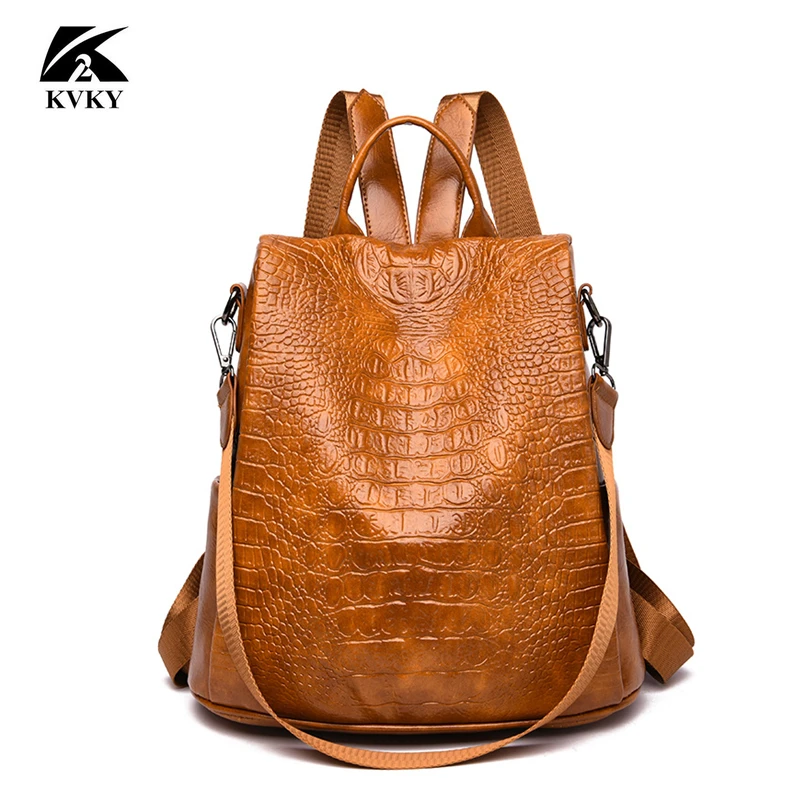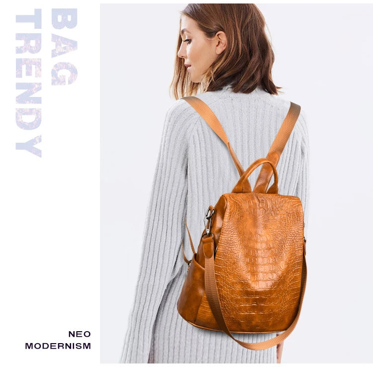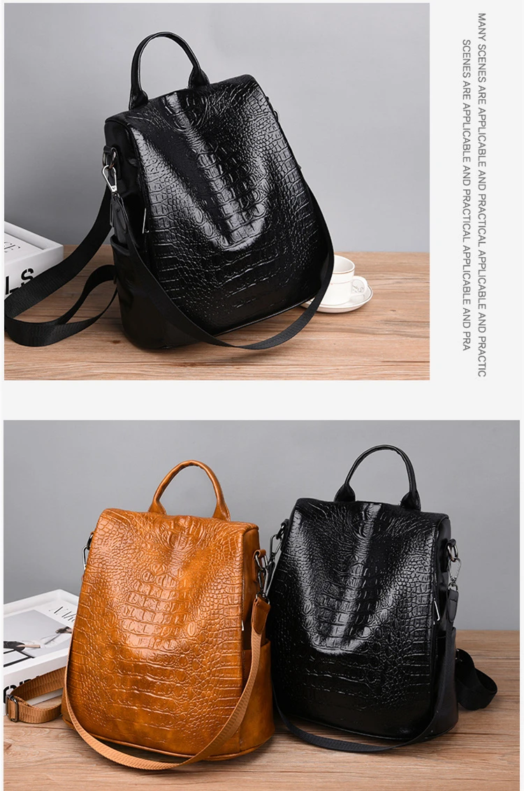 Модный женский рюкзак из спилка высокого качества, сумка через плечо, женская сумка через плечо с крокодиловым принтом, большая многофункциональная сумка