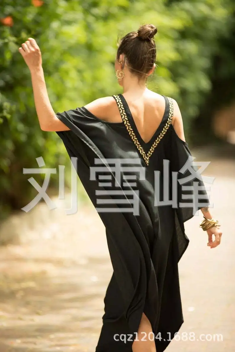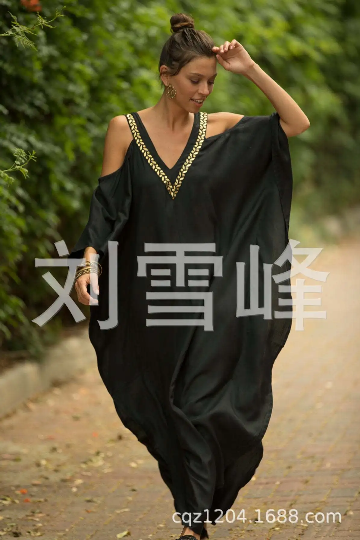 Пляжная блузка SuperAen, однотонная на тонких бретелях, из искусственного хлопка с вышивкой, праздничный халат, бикини, Солнцезащитная рубашка, свободное платье для женщин