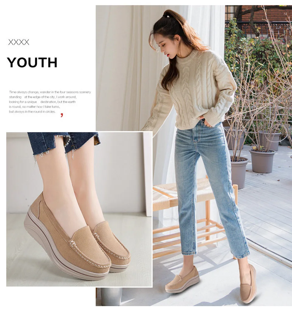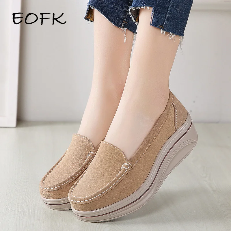 Женские замшевые лоферы EOFK, на платформе, без застежки, с круглым носком, повседневные туфли на толстой подошве, весна-осень