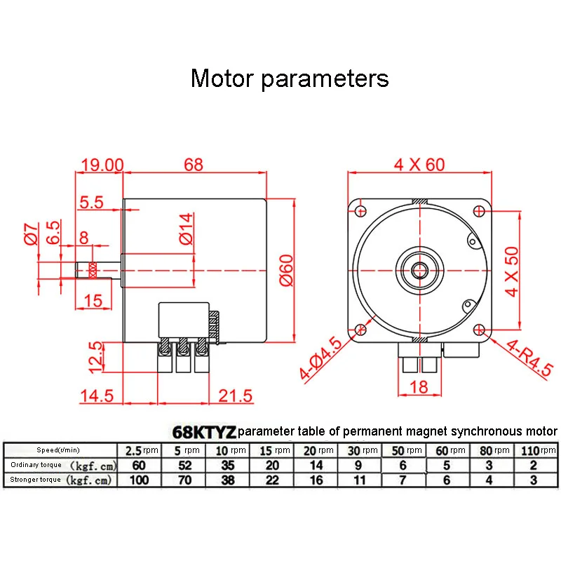 Синхронный мотор-редуктор переменного тока с постоянными магнитами, 68KTYZ, 2,5-110 обмин, 28 Вт