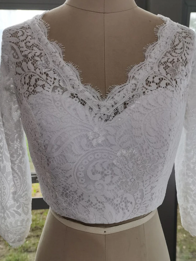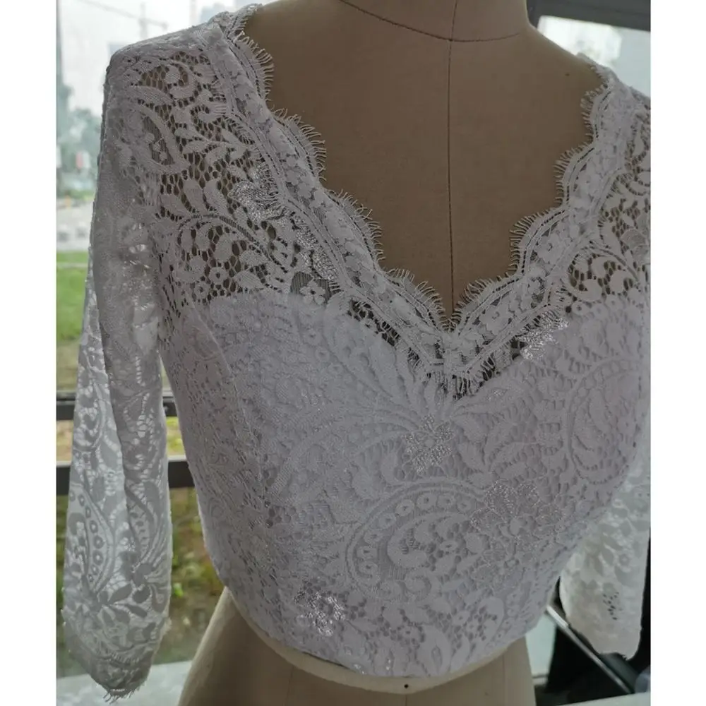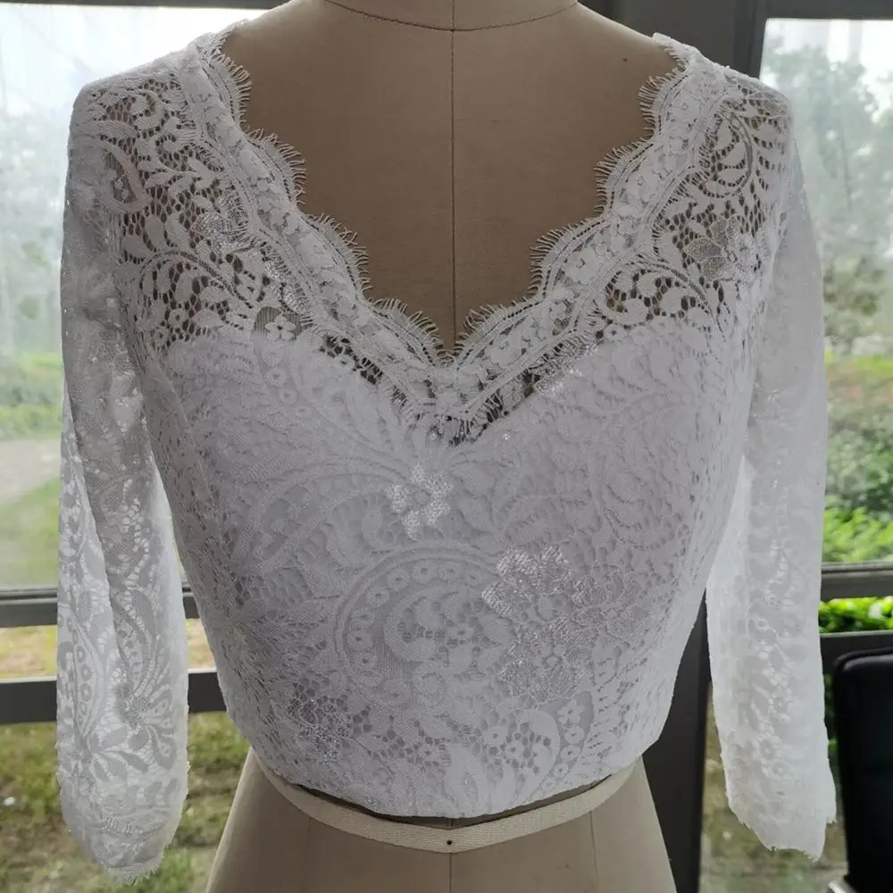 Свадебное болеро с v-образным вырезом, длинный рукав, свадебная куртка, шаль белого цвета и цвета слоновой кости, Кружевная аппликация, Индивидуальный размер, свадебные аксессуары, куртки