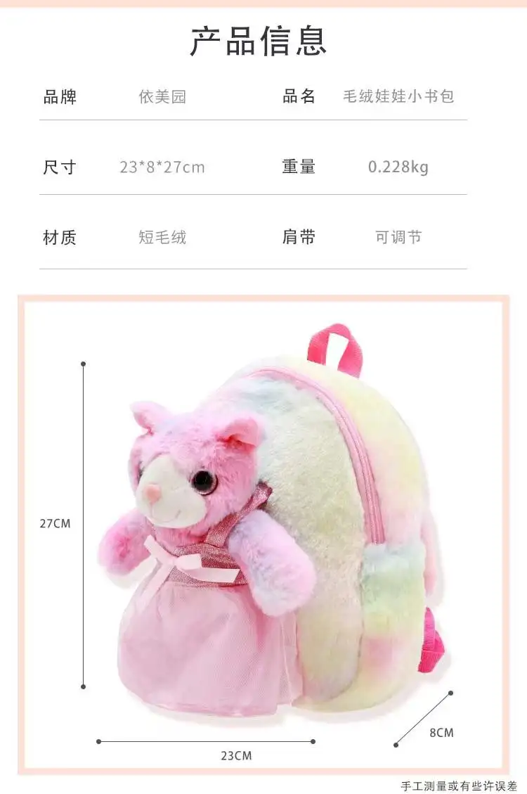 Детский меховой рюкзак, для девочек, с единорогом, на молнии