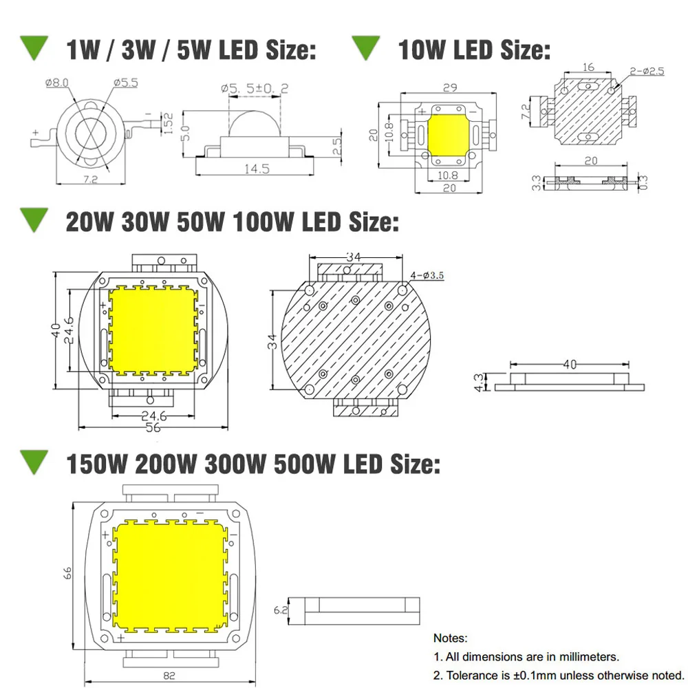 Voltage3.0-3.6V(3W)/6-7V(5W)/9-11V(10W)/30-34V(20-100W)