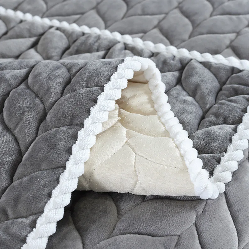 Утолщенное стеганое короткое плюшевое покрытие для дивана, нескользящий защитный чехол с кружевными краями в европейском стиле, универсальный чехол для дивана