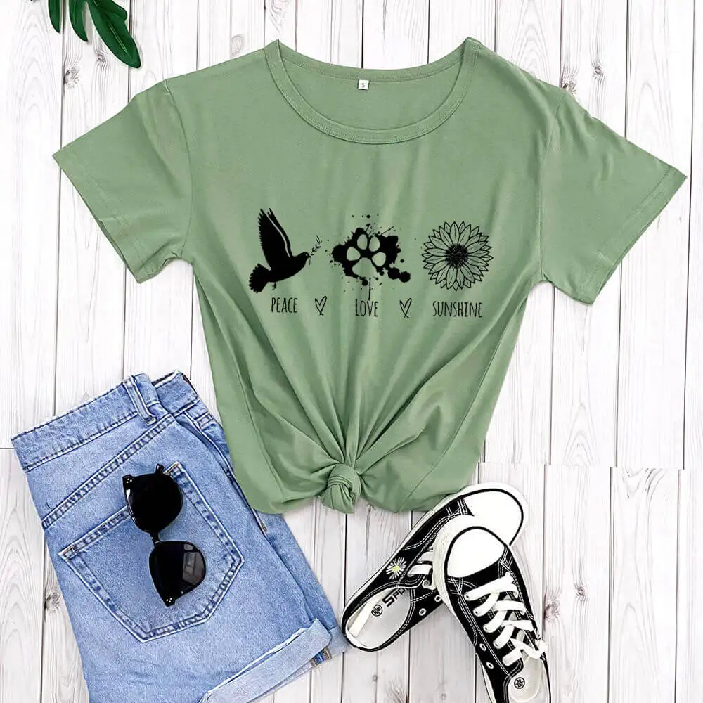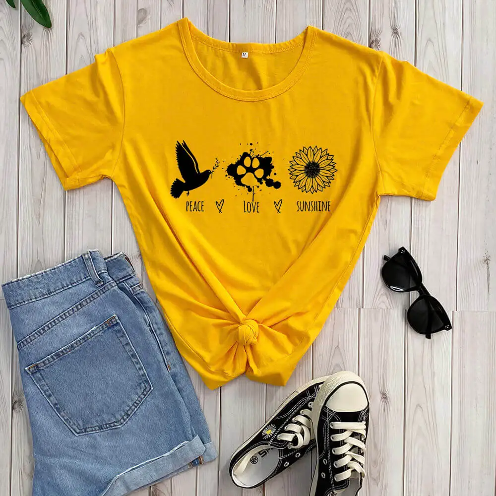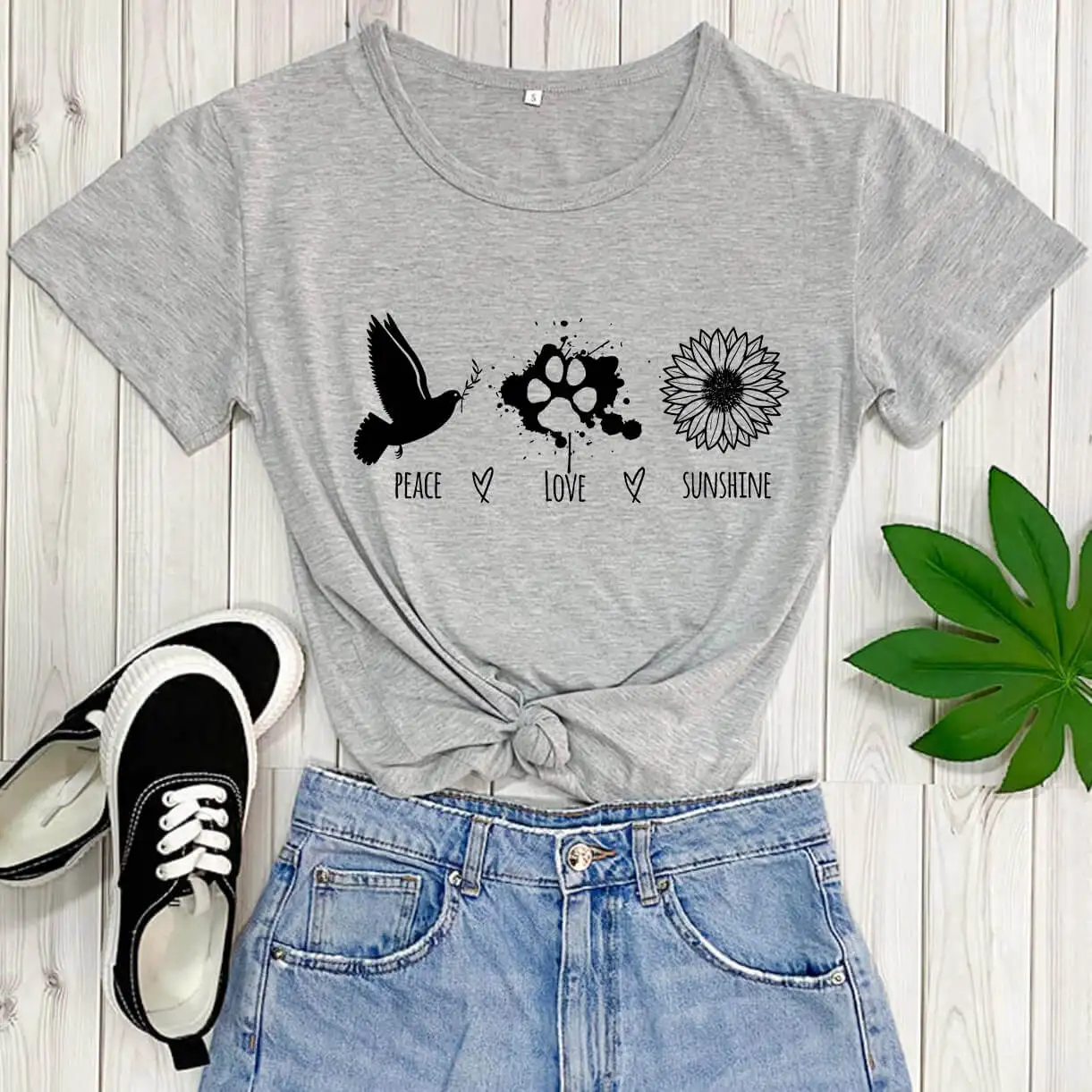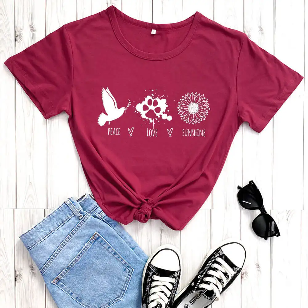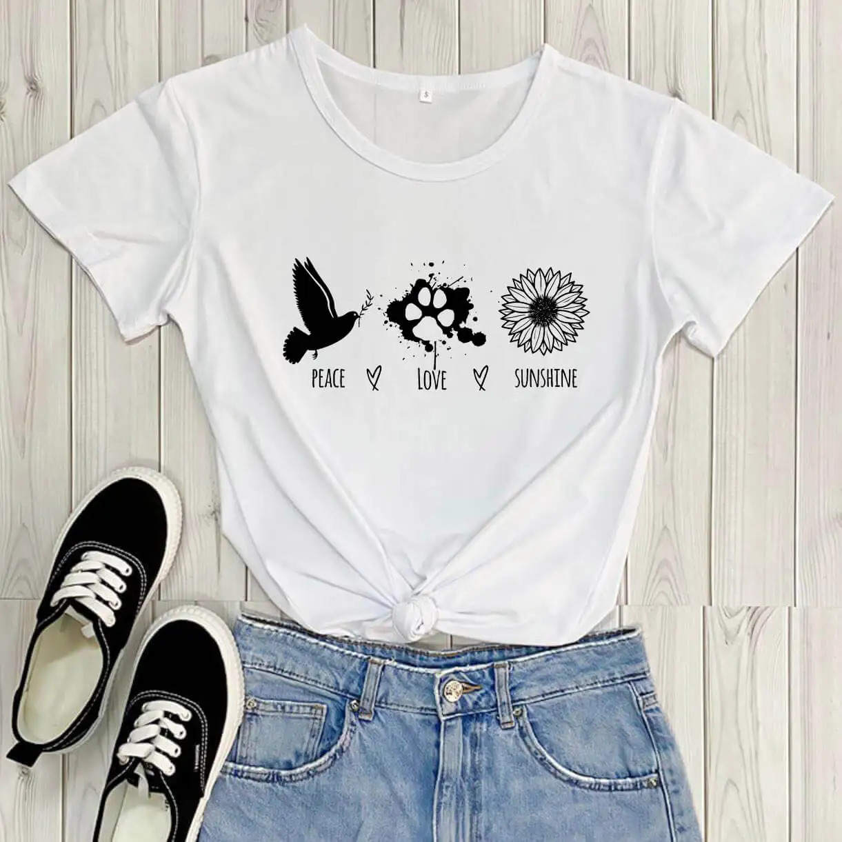 Мир, любовь, Новое поступление, Женская Повседневная забавная футболка из 100% хлопка, рубашки с подсолнухом, рубашки с надписью Love, рубашки мира