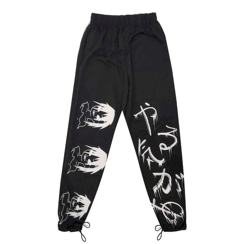 Женские брюки в стиле аниме, черные брюки с широкими штанинами, пря...