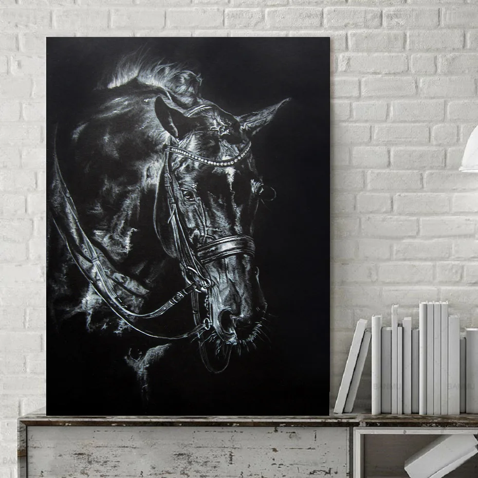 Абстрактный Животные черный живопись на холсте с изображением лошад...