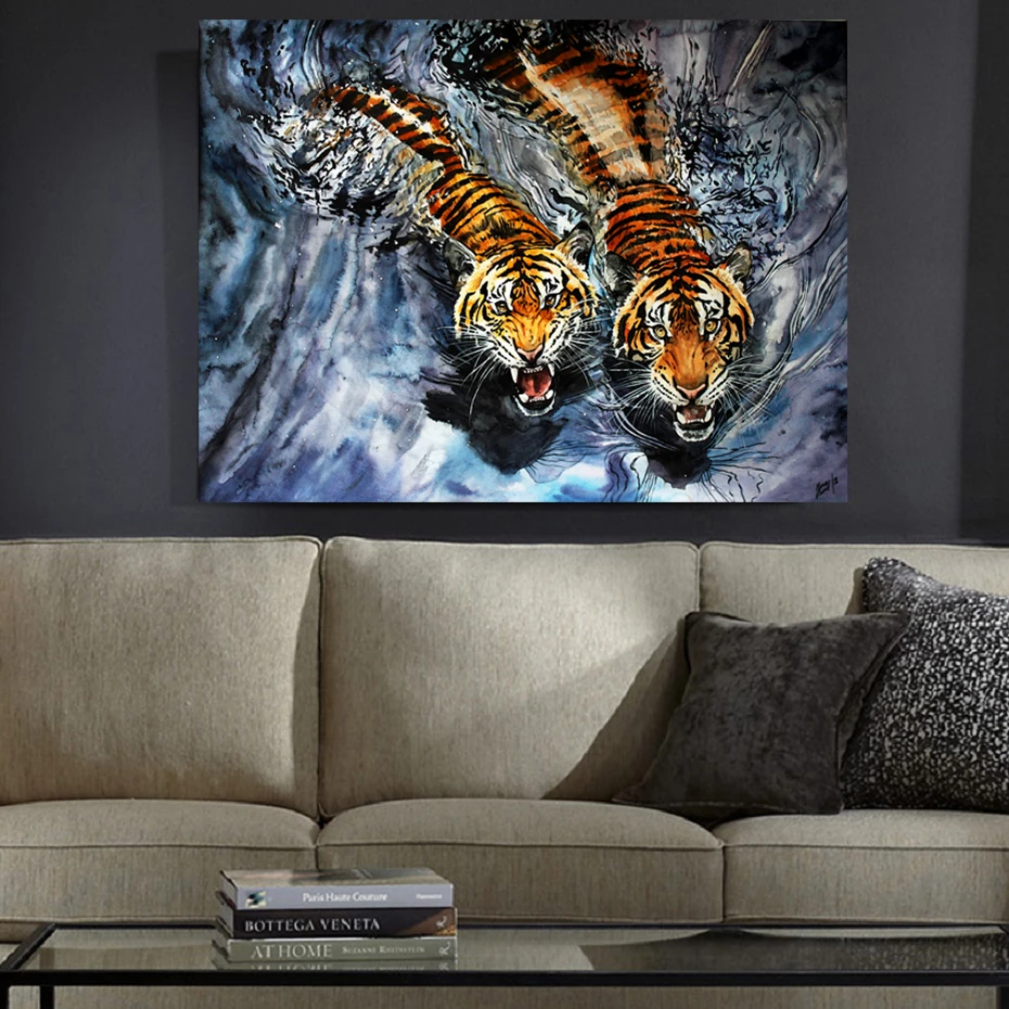Картина на холсте, постер с животными, акварель, слон, петух, павли...