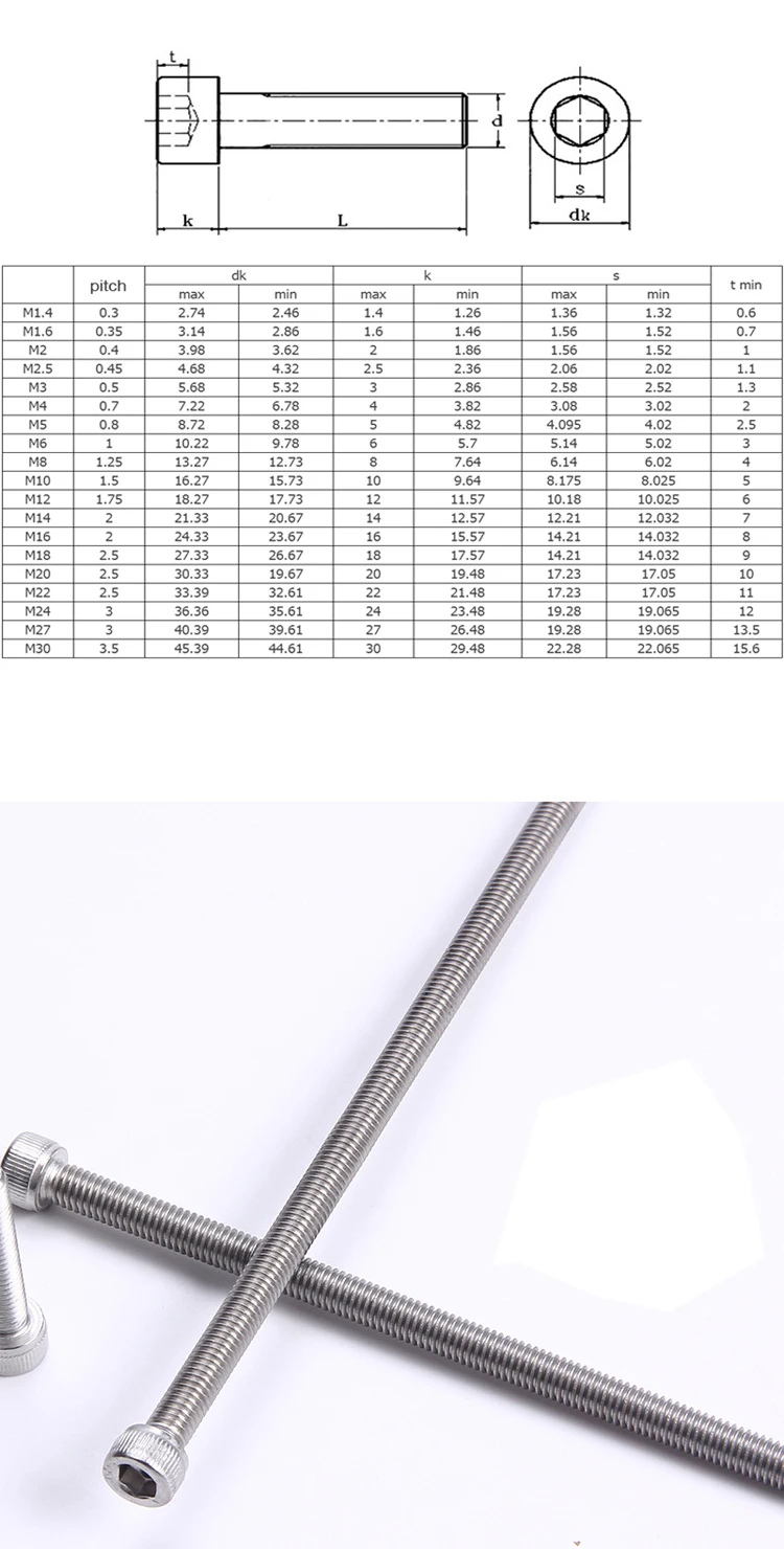 M2 M3 M4 M5 DIN912 304 Внутренний шестигранный винт из нержавеющей стали с рифленой головкой Болты Винты очень длинные