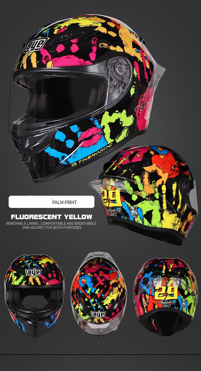Мотоциклетный шлем на все лицо, гоночный шлем для мотокросса с радужным козырьком, матовый черный, в горошек