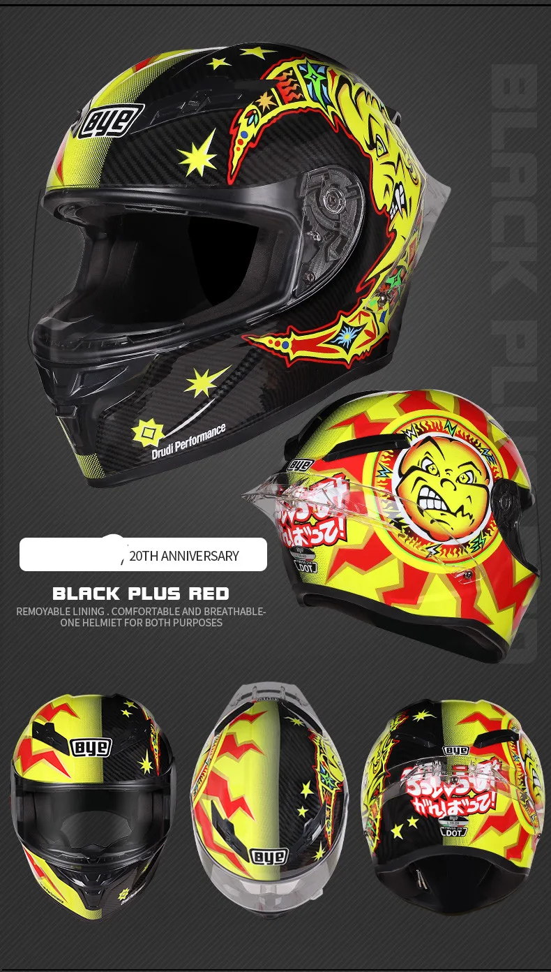 Гоночный шлем Grawing из углеродного волокна с темными линзами мото...