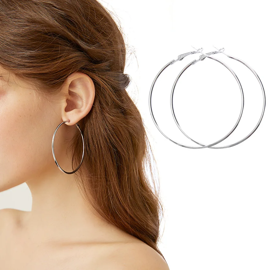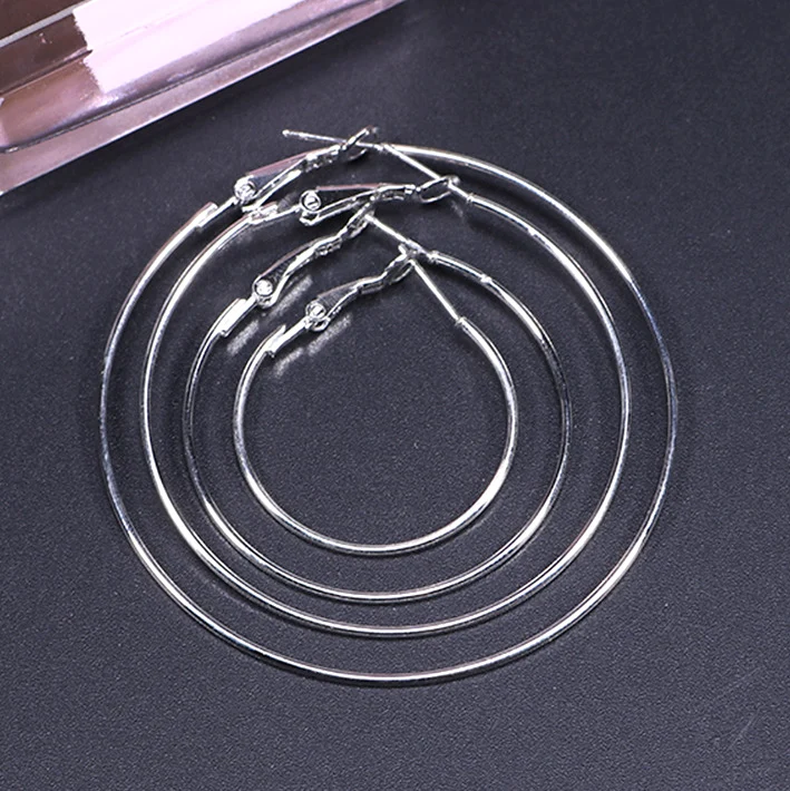 Большие гладкие круглые серьги-кольца 4 размера, серьги, Простые Вечерние круглые серьги-петли для женщин, Модная бижутерия, бижутерия, аксессуары