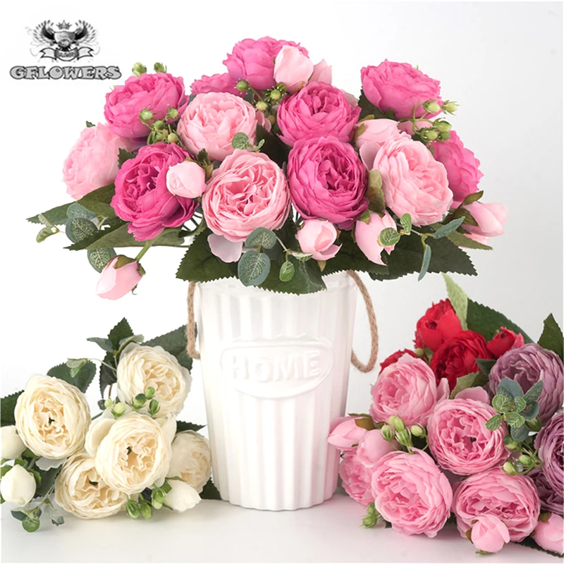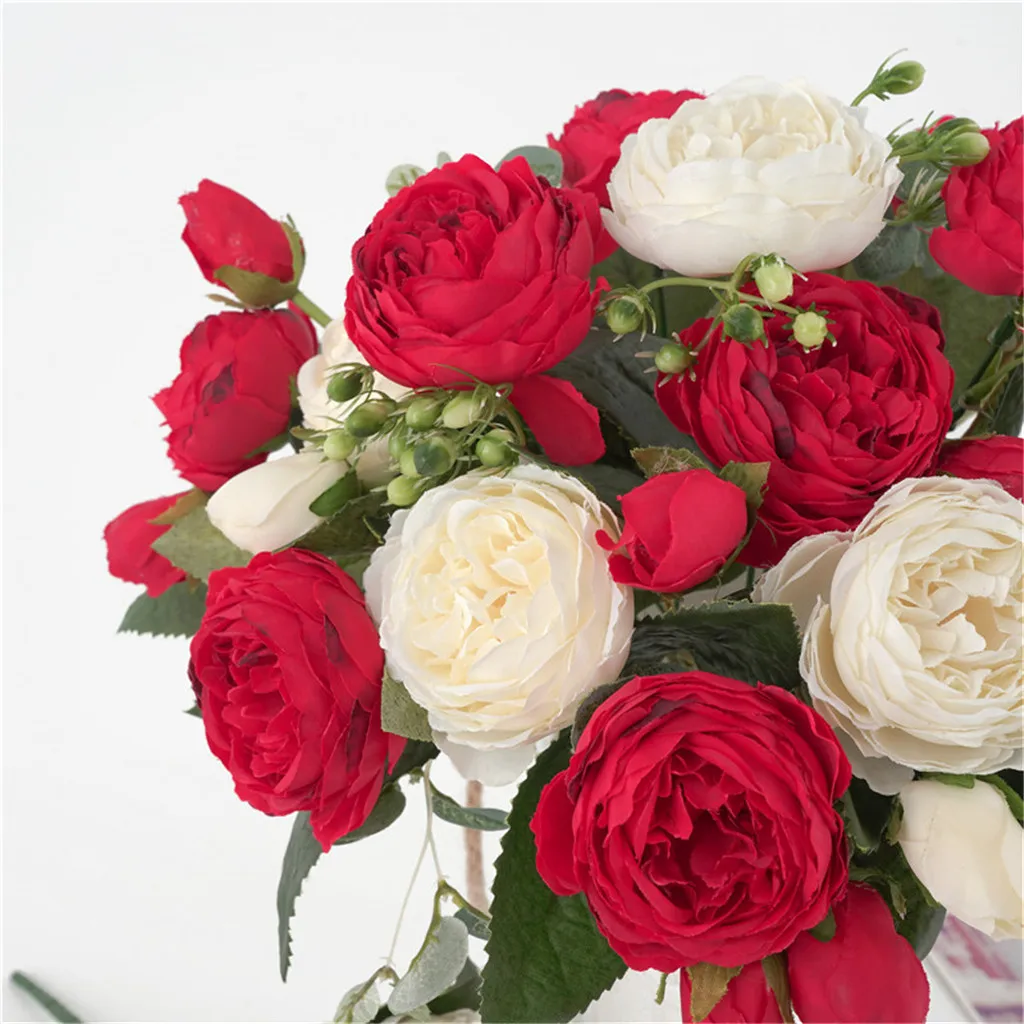Букет искусственных цветов пиона, розы, шелковые искусственные цветы, 5 больших головок, 4 цветка и дешевые бутоны для домашнего интерьера