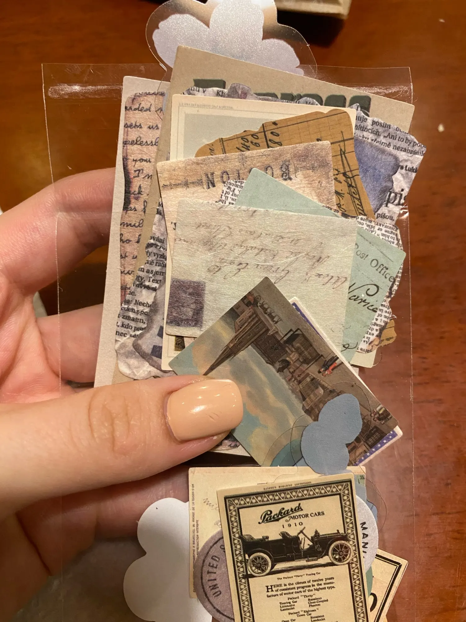 Ожидала, что весь комплект это стикеры, но оказалось, что только тут только 3 наклейки, остальное это распечатки на разного вида бумаге.