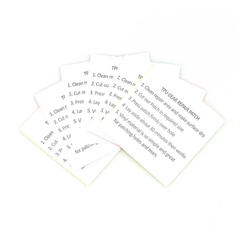 Цвет: полупрозрачный Материал: ТПУ Размер: 7x7 см/2,76x2,76" Количество: 1/5 шт. (на ваш выбор) Особенности: 1. Для ремонта надувных лодок, подходит для всех видов высокоценных надувных изделий, таких как надувные матрасы, надувные лодки, батуты, надувные диваны, плавательные кольца, пляжные мячи и т. Д. 2. Также может использоваться для ремонта или связывания различных материалов, включая ПВХ, нейлон, холст, искусственную кожу, резину, все виды пластика, металла, стекла и так далее. Шаг ремонта: 1. Очистите поверхность возле щелей или отверстий и сохраните их сухими. 2. Отклейте бумагу и непосредственно Прикрепите заплатку к отверстию, полностью закройте ее и прижмите, чтобы она прочно приклеилась. 3. Ремонт завершен через 20-30 минут, и он полностью застынет через 24 часа.