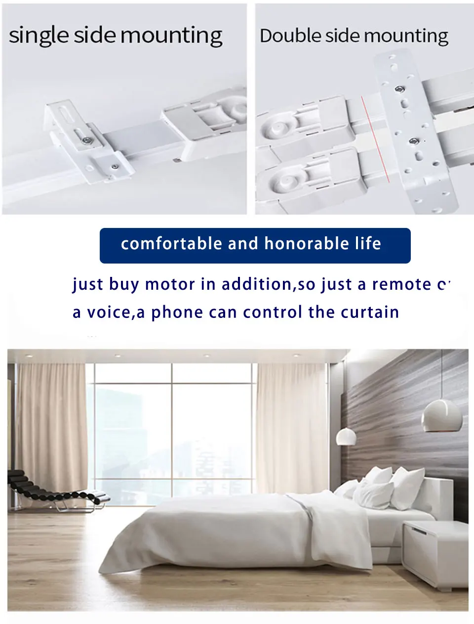 2.ThEМаксимальная нагрузка зависит от длины занавеса, для 4 м прямой дорожки/рельсы, может загружать 75 кг; 8 м прямой дорожки/рельсы, может загружать 45 кг.