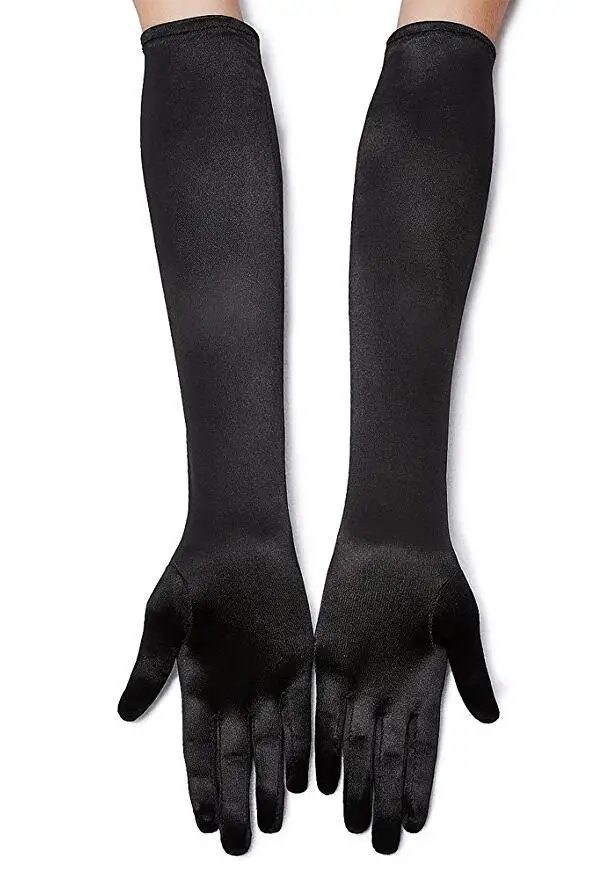 Классические взрослые черные белые красные серые кожаные перчатки для оперылоктязапястья Стрейчевые атласные длинные перчатки с пальцами женские перчатки-Хлопушки подходящий костюм
