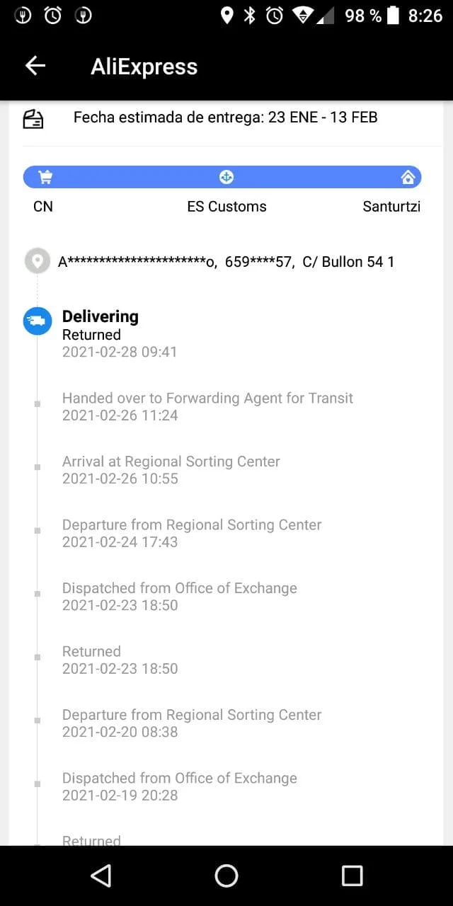 Заказ не прибыл в пункт назначения.