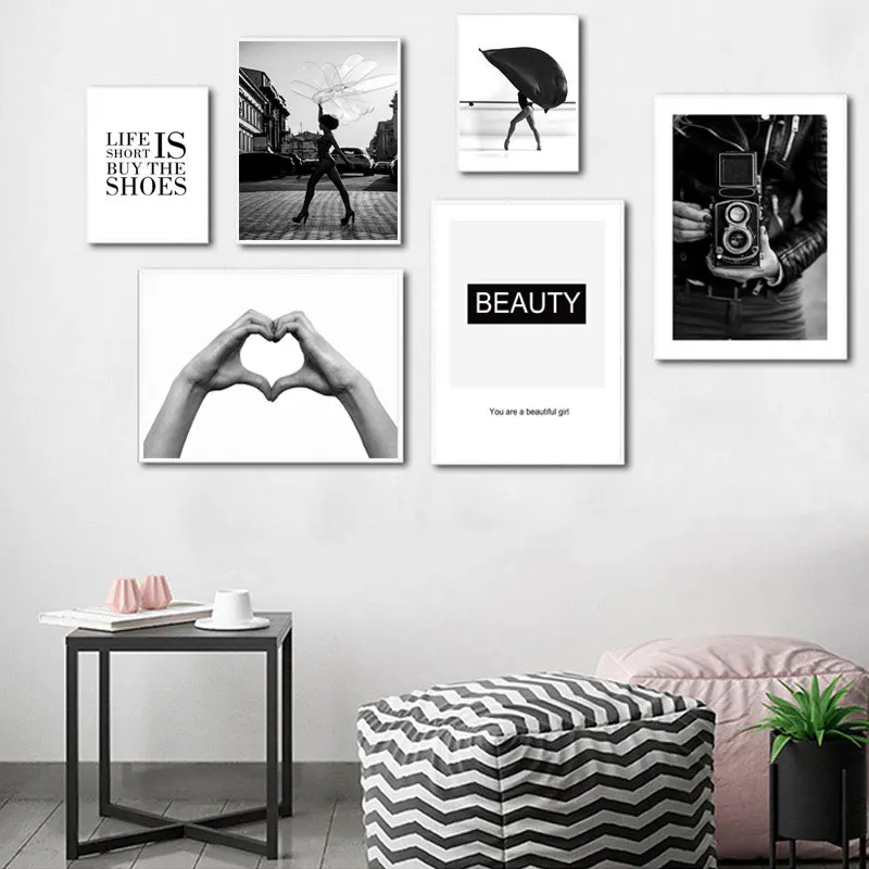 Холдинг рука красота плакат цитаты мода Девушка Черный Whtie холст стены искусства печати скандинавский живопись современный стиль украшения картина