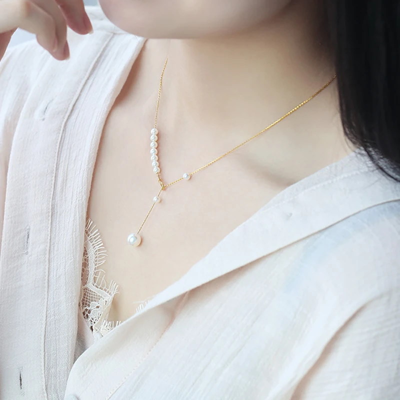 Жемчужное Ожерелье Akoya XF800, 18 К, Золотое ювелирное изделие, морская вода, жемчужное ожерелье с кисточкой, чистая цепочка AU750, для женщин, для свадьбы, X504