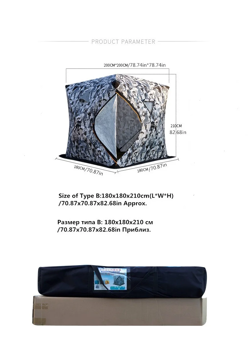 Палатка для зимней рыбалки, трехслойная, ветрозащитная, водонепроницаемая, с защитой от снега