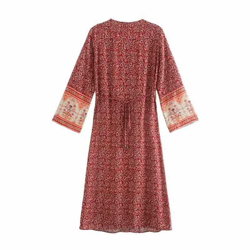Женское винтажное платье-кимоно с цветочным принтом, V-образным выр...