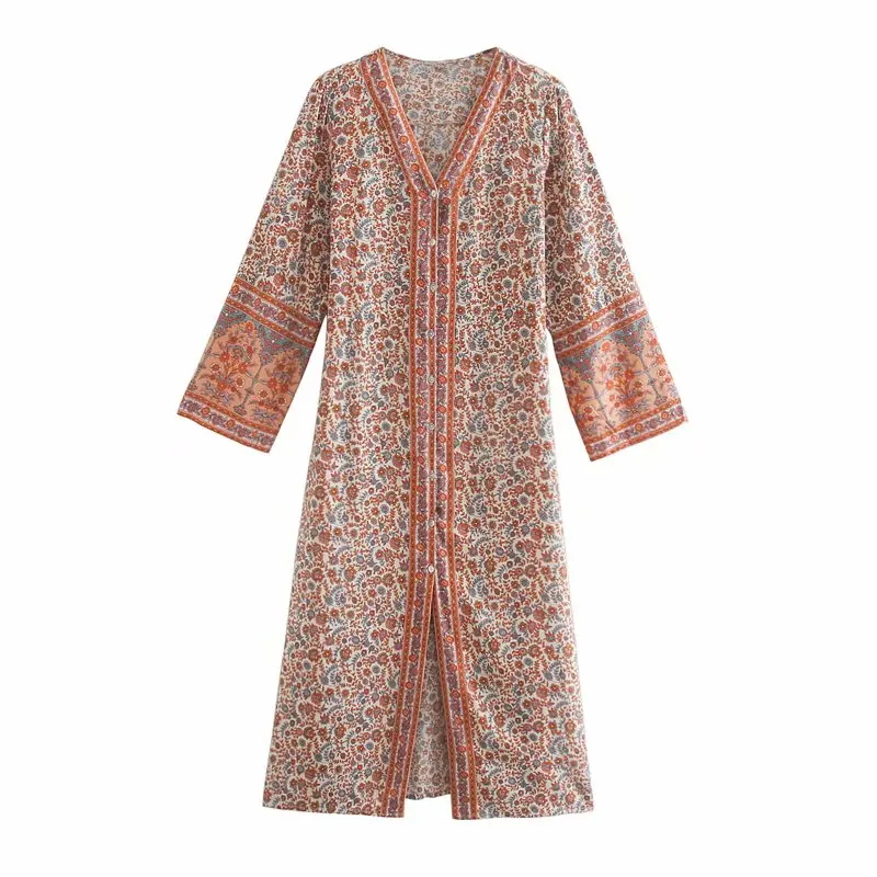 Винтажное шикарное модное женское платье в стиле хиппи с цветочным ...