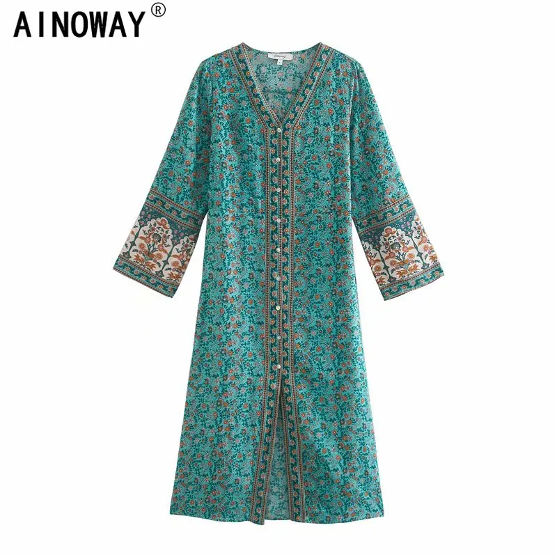 Женское винтажное платье с цветочным принтом, Пляжное богемное Макс...