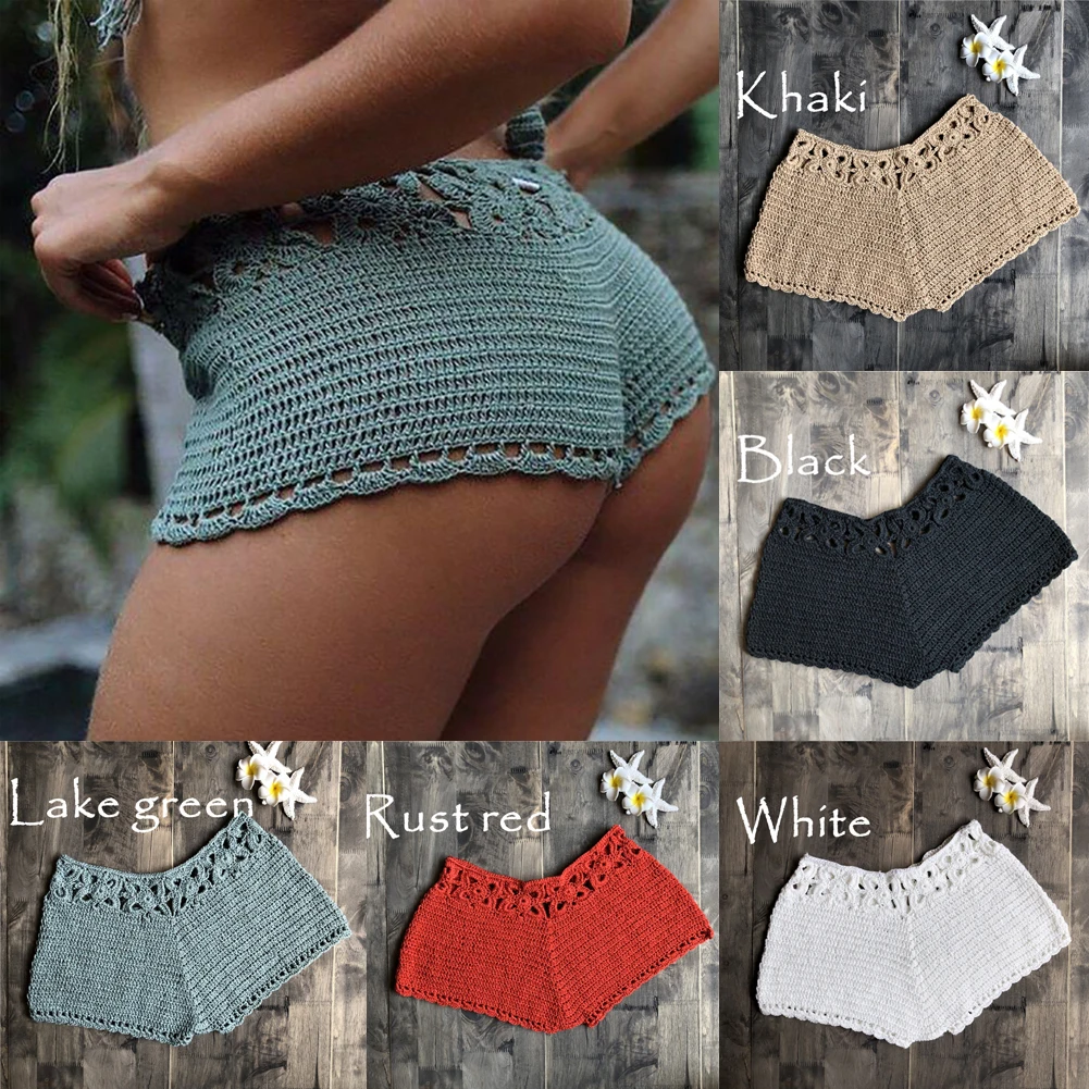 Женские вязаные крючком шорты для плавания, трикотажные ажурные НИЗ...
