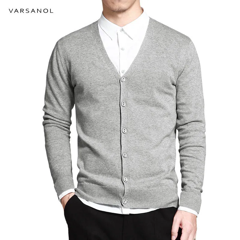 Мужской вязаный кардиган на пуговицах, хлопковый Кардиган с длинным рукавом и V-образным вырезом, однотонная повседневная одежда