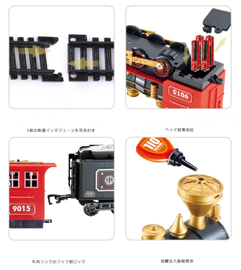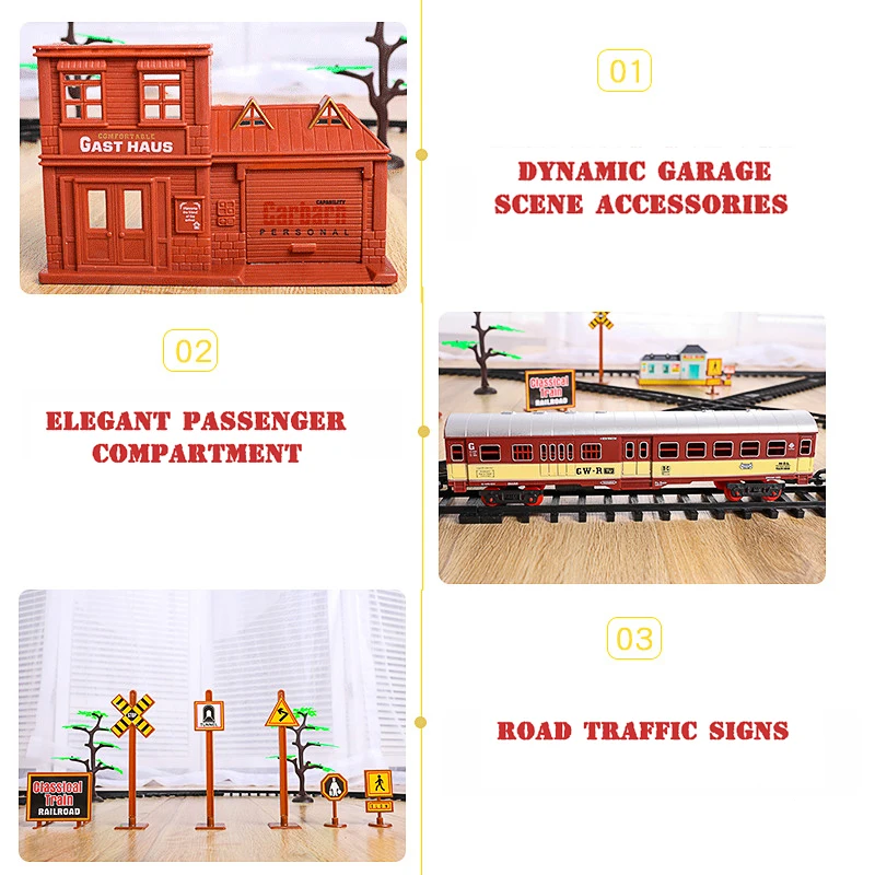 Ретро паровой поезд ИгрушкаМатериал игрушки:Пластик/сплавУпаковка:Без оригинальной коробкиЦвет:Как показано на skuПодходящий возраст:Старше 7 летЦвет изделия:A: [Обычные модели] Черные базовые модели (102*67 см) с 3 автомобилями + красивые аксессуарыB: [Версия дыма] Красный старинный классический (148*86 см) с 3 отсеками + Дымовое маслоC: [Версия дыма] черная роскошь (181*78 см) с 5 автомобилями + Сцена + Дымовое маслоD: [Версия дыма] роскошный сплав (181*78 см) с 5 автомобилями + Сцена + Дымовое масло