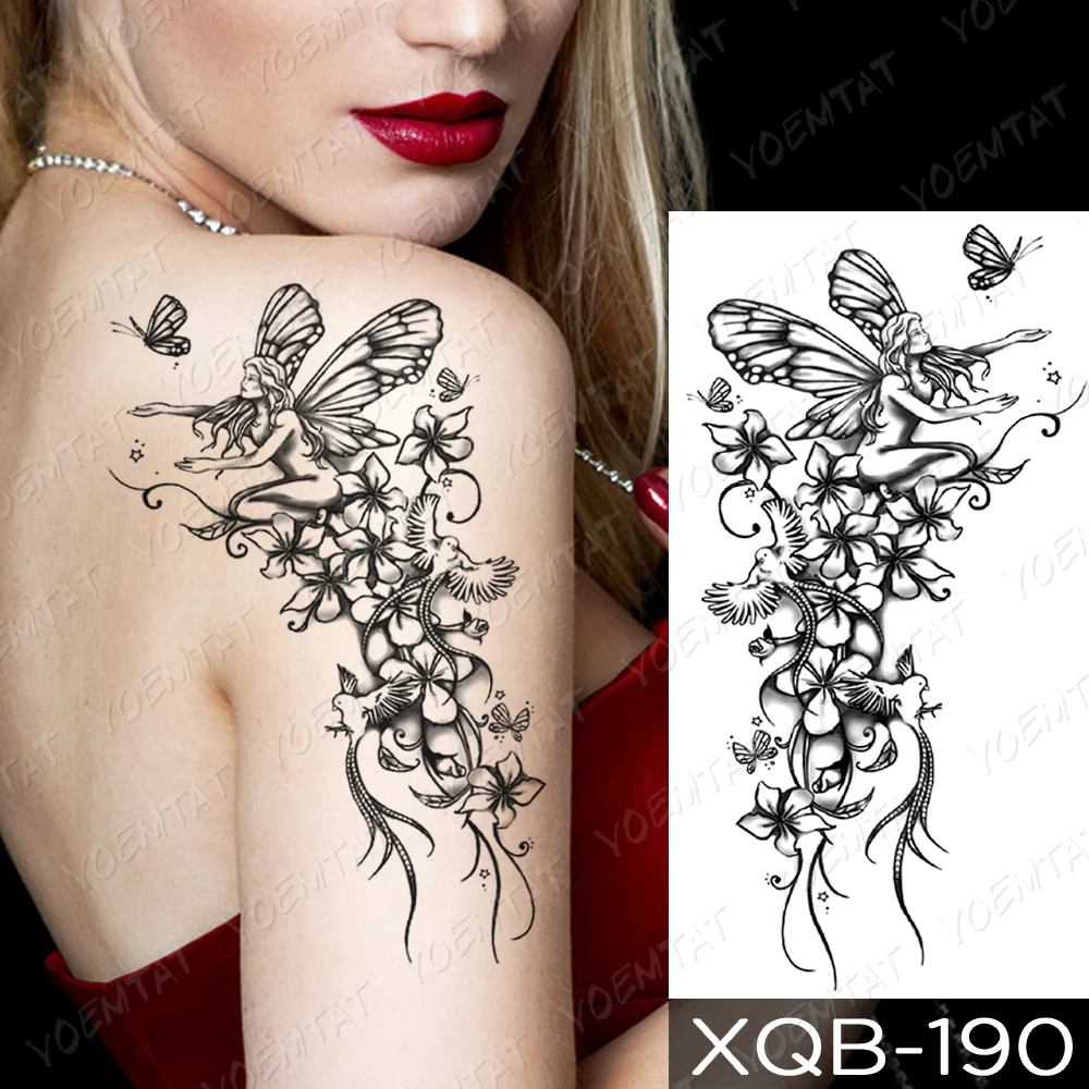 Водонепроницаемая Временная тату-наклейка бабочка, лилия, фея, птица, татуировки, Русалка, девушка, тело, искусство, рука, ложный рукав, тату, для женщин и мужчин