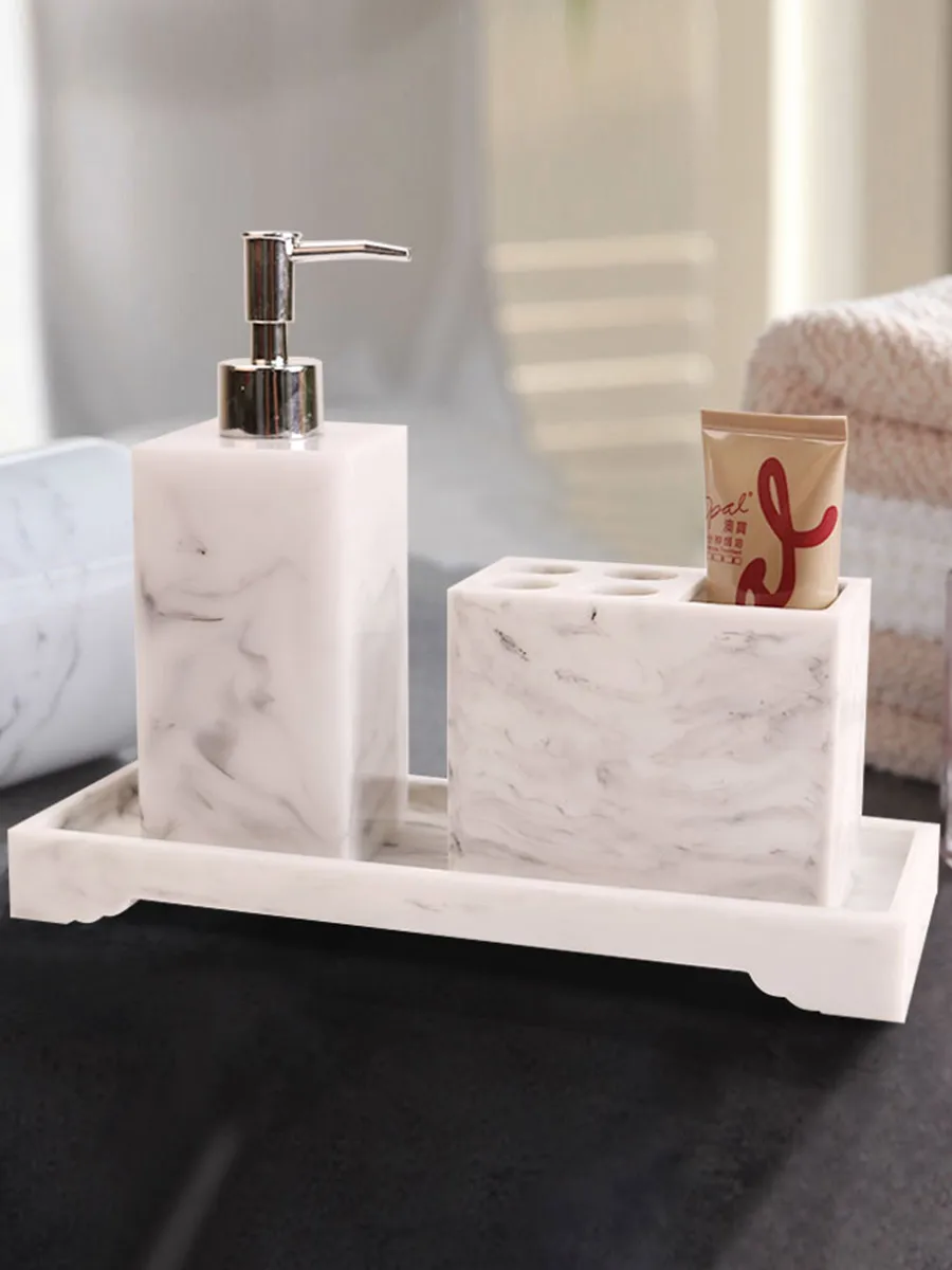 Набор аксессуаров для ванной комнаты из смолы, белый мрамор, диспен...