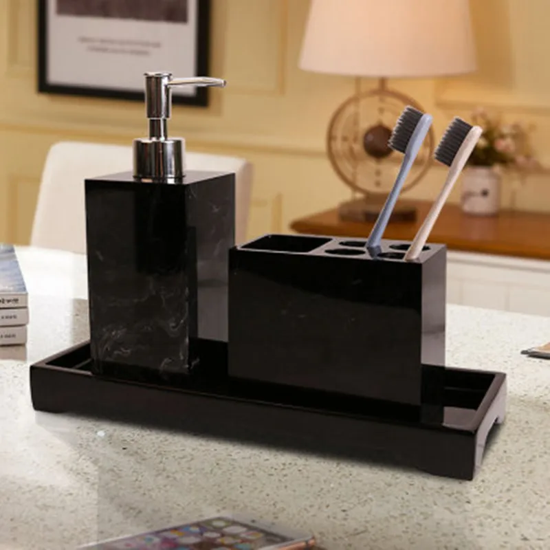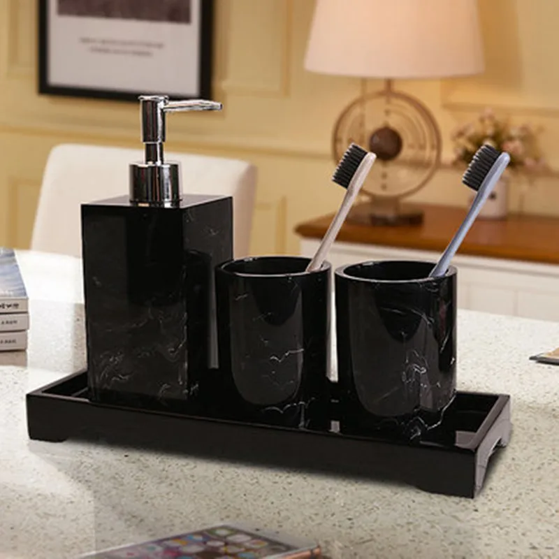 Набор из четырех черных аксессуаров для ванной из смолы, держатель ...