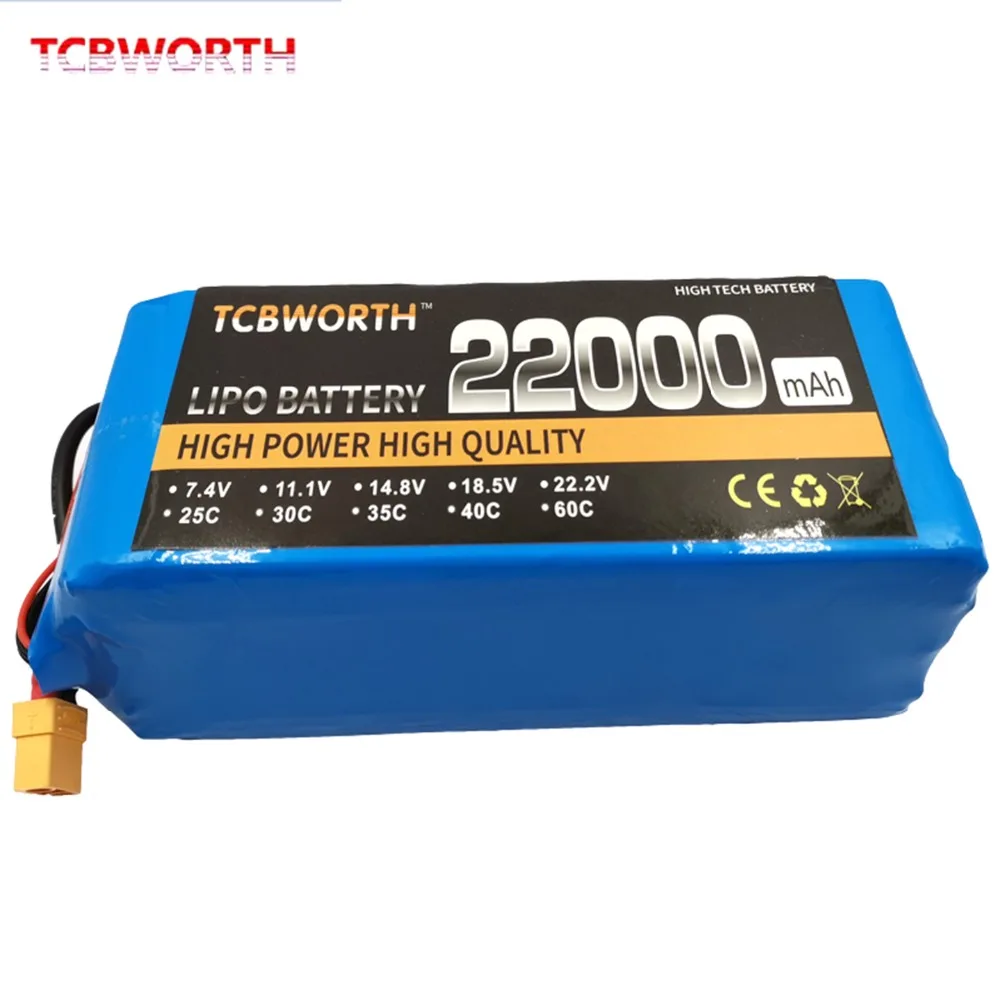 TCBWORTHRC LiPo Battery2S 7,4 V 3S 11,1 V 4S 14,8 V 5S 18,5 V 6S 22,2 V 10000 12000 16000 22000mAh 25C и 35CДля радиоуправляемого вертолета самолета автомобиля лодки дрона квадрокоптера