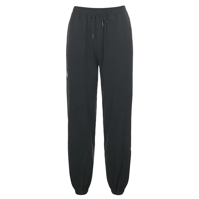 Брюки спортивные женские, с вышивкой, на шнуровке, элегантная буква