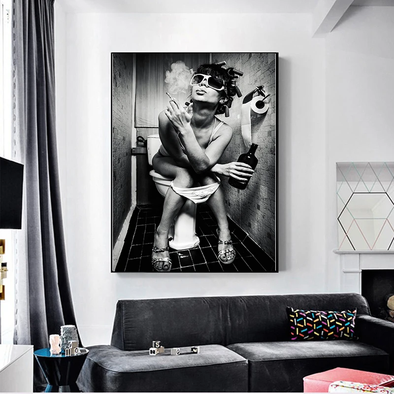 Современные черно-белые сексуальные постеры и принты на Картина на холсте женщина для питья и курения Настенная картина для гостиной домашний декор