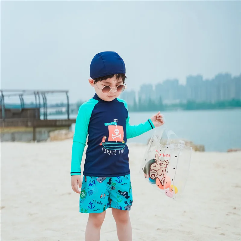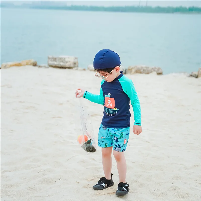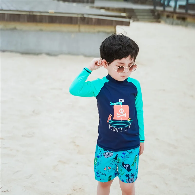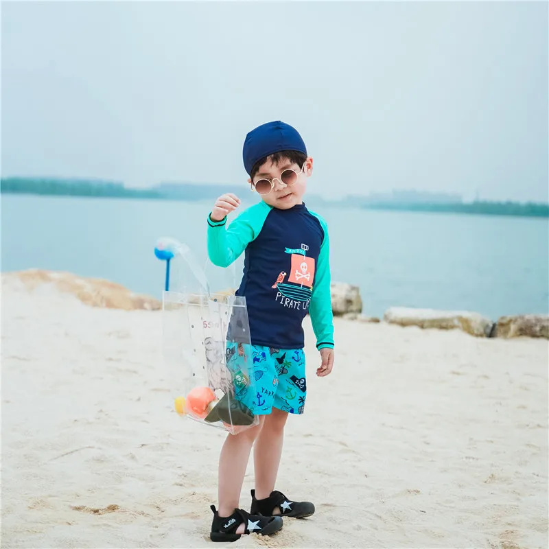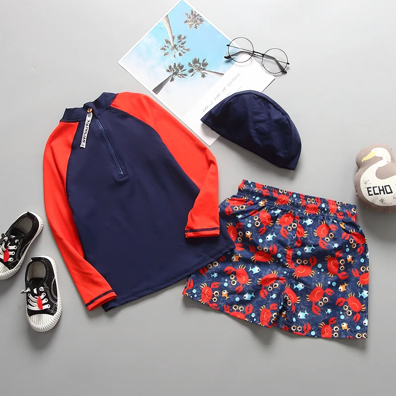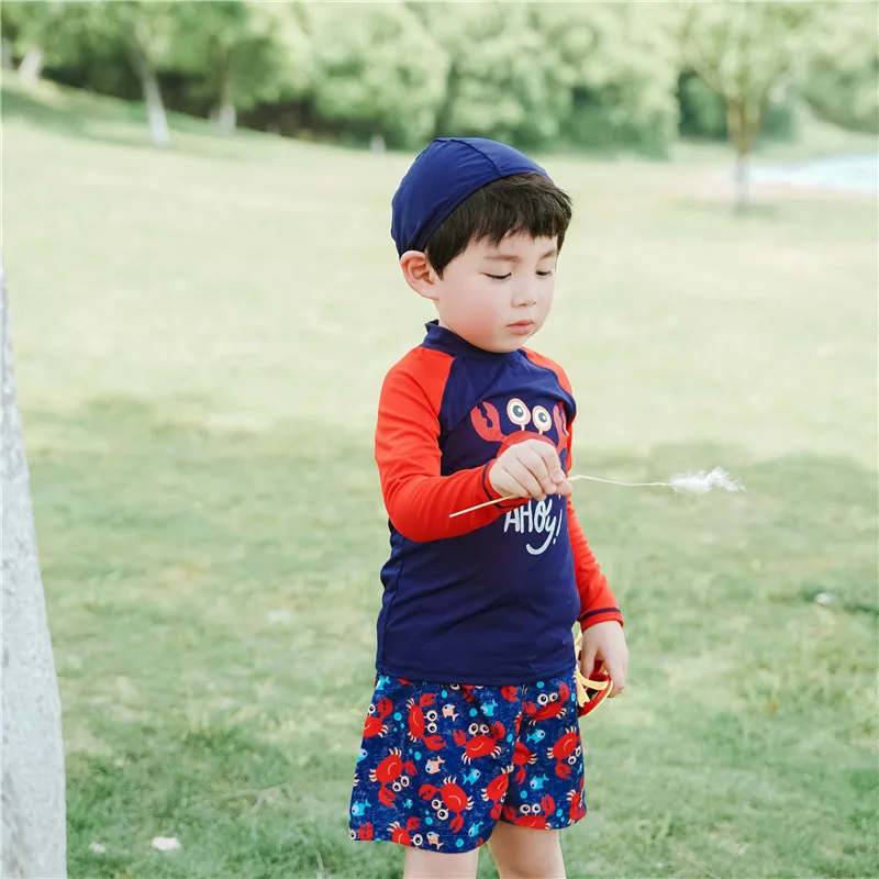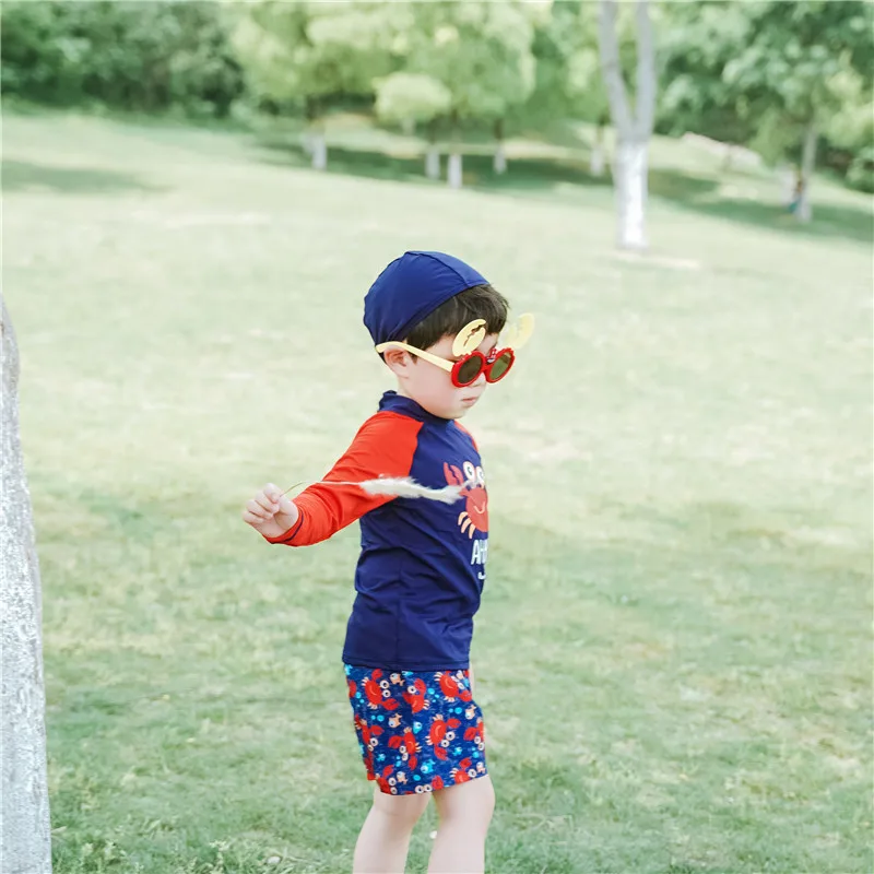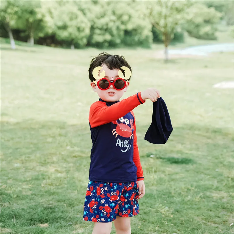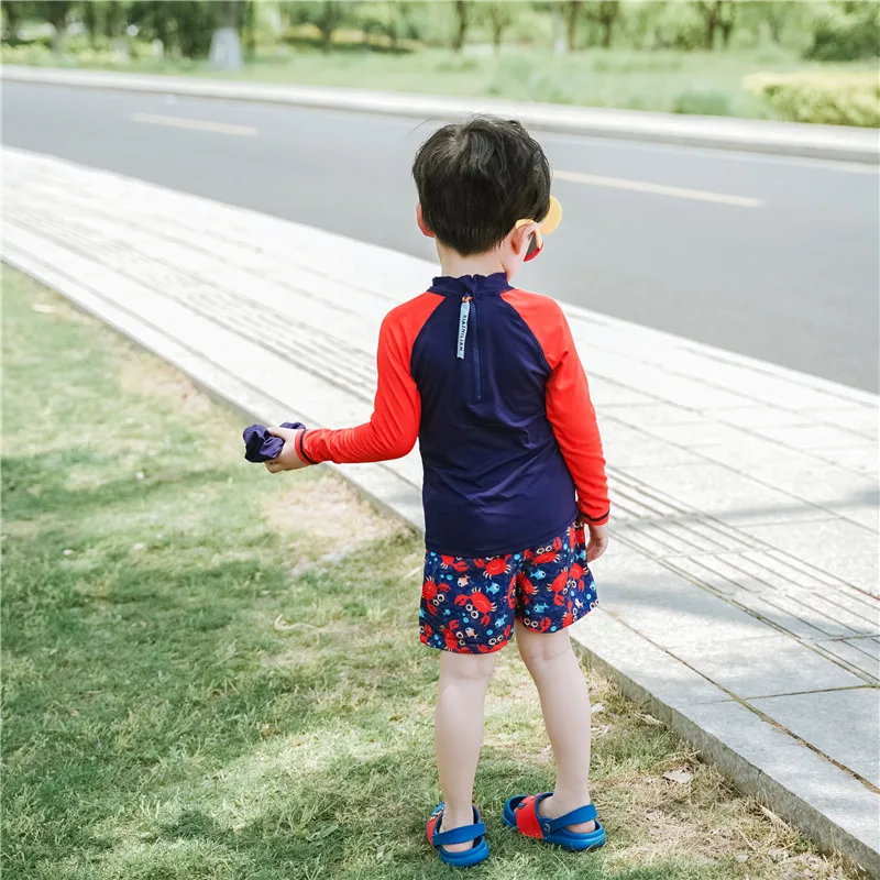 Купальный костюм для детей; Детский костюм для серфинга с принтом краба; Купальный костюм с длинными рукавами для мальчиков; Одежда для плавания; Пляжная одежда для маленьких мальчиков с УФ-защитой