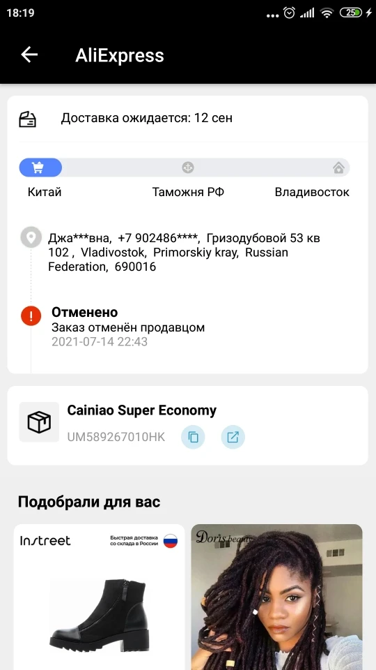 Страна: RU Color: 1PCS Доставка: Cainiao Super Economy 22.07.2021