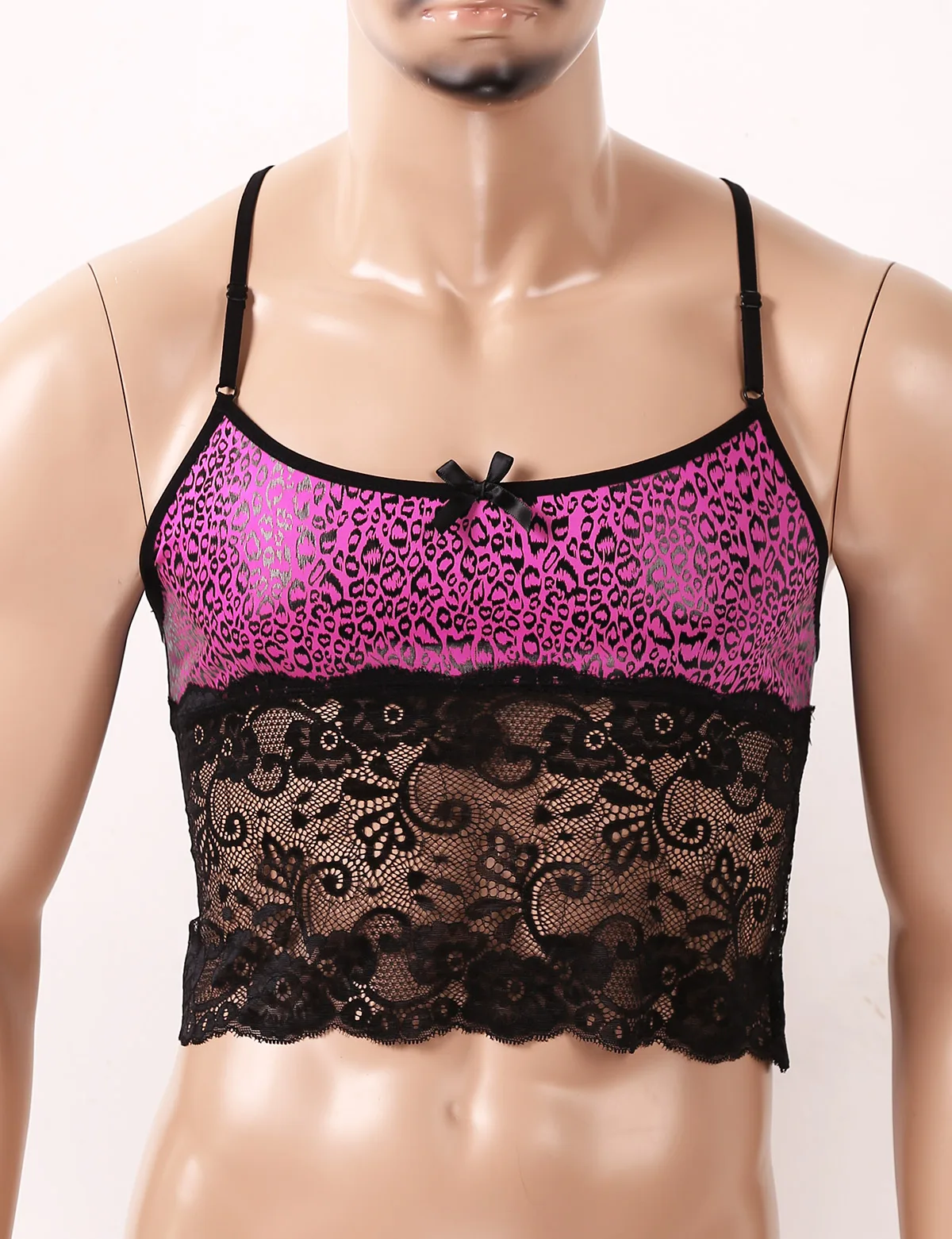 Майка Мужская Нижнее белье Sissy с леопардовым принтом, Эротическая кружевная майка с регулируемыми бретелями, кроп-топ, пикантное ночное белье для геев