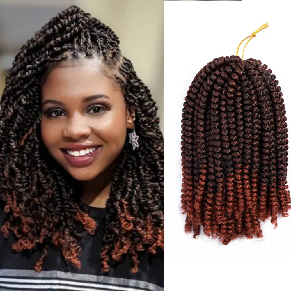 Saisity 8 дюймов Омбре Пружинные плетеные волосы крючком синтетические удлинители 30 корней черные коричневые плетеные волосы крючком