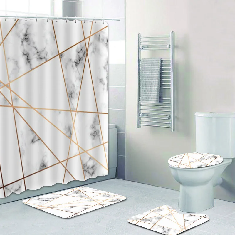 Роскошная Черная Золотая шеврон зигзаг мраморная душевая занавеска для ванной Геометрическая Золотая фольга занавеска для ванной s коврики ковер домашний декор