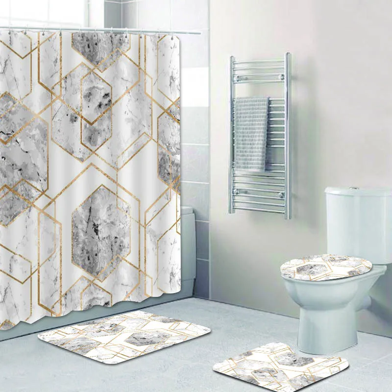 Современная Золотая блестящая мраморная занавеска для душа, элегантная Геометрическая металлическая Шестигранная занавеска для ванной s, абстрактное искусство, фотообои для ванной
