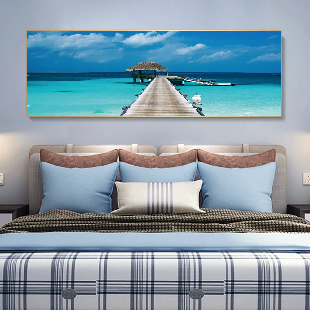 Пляжный деревянный мост Курорт пейзаж Картина Холст Плакаты принты Куадрос настенные картины для гостиной спальни украшение