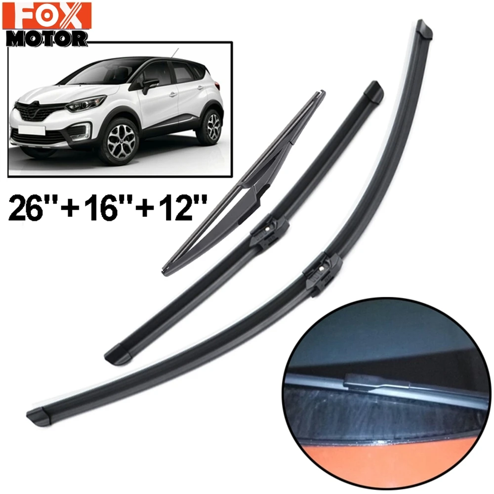 Комплект стеклоочистителей для Renault Captur Kaptur, комплект из 3 передних и задних щеток лобового стекла для Renault Captur 2020, 2019, 2018, 2017, 2016, 26, 16, 12 дюймов