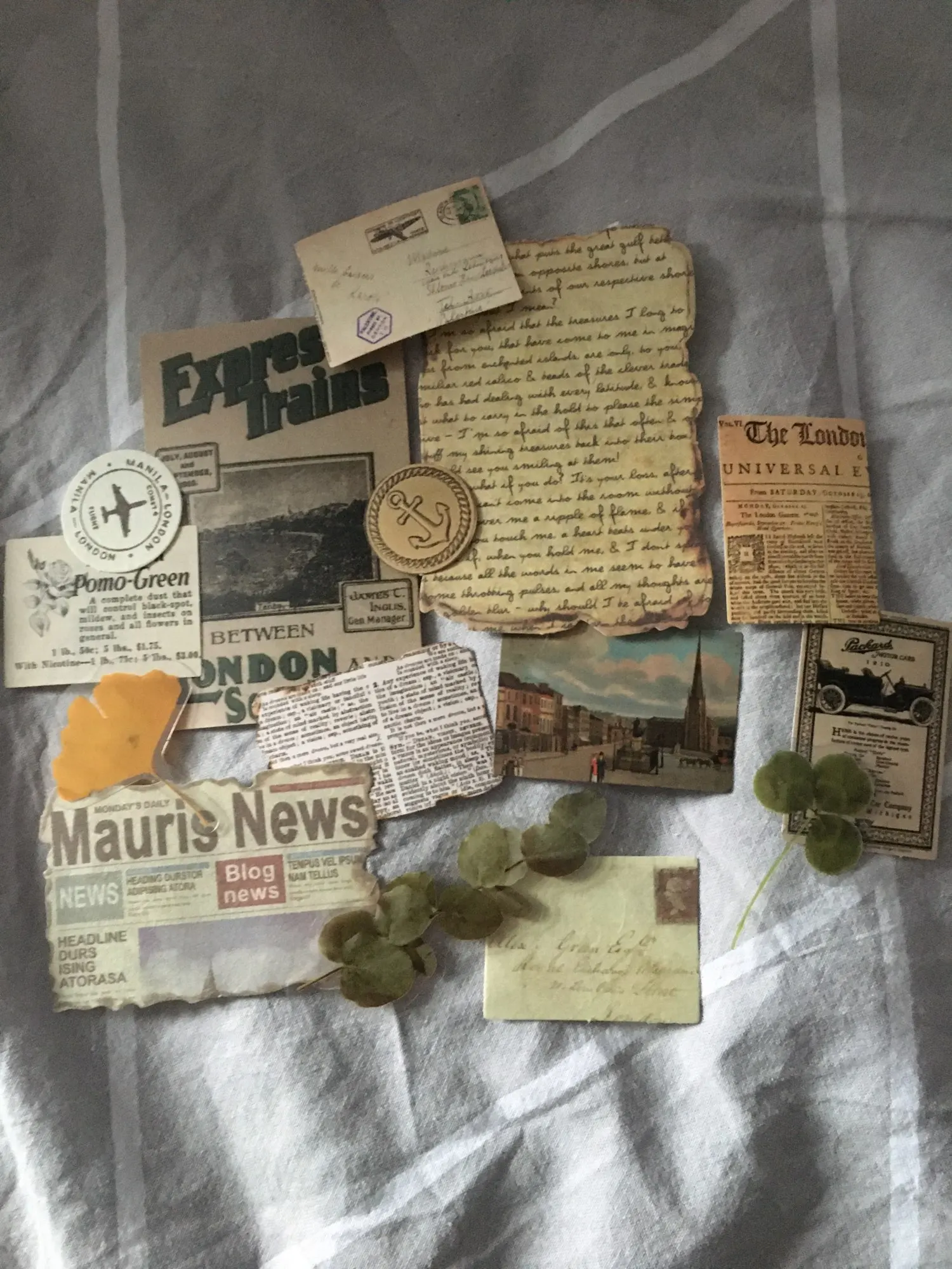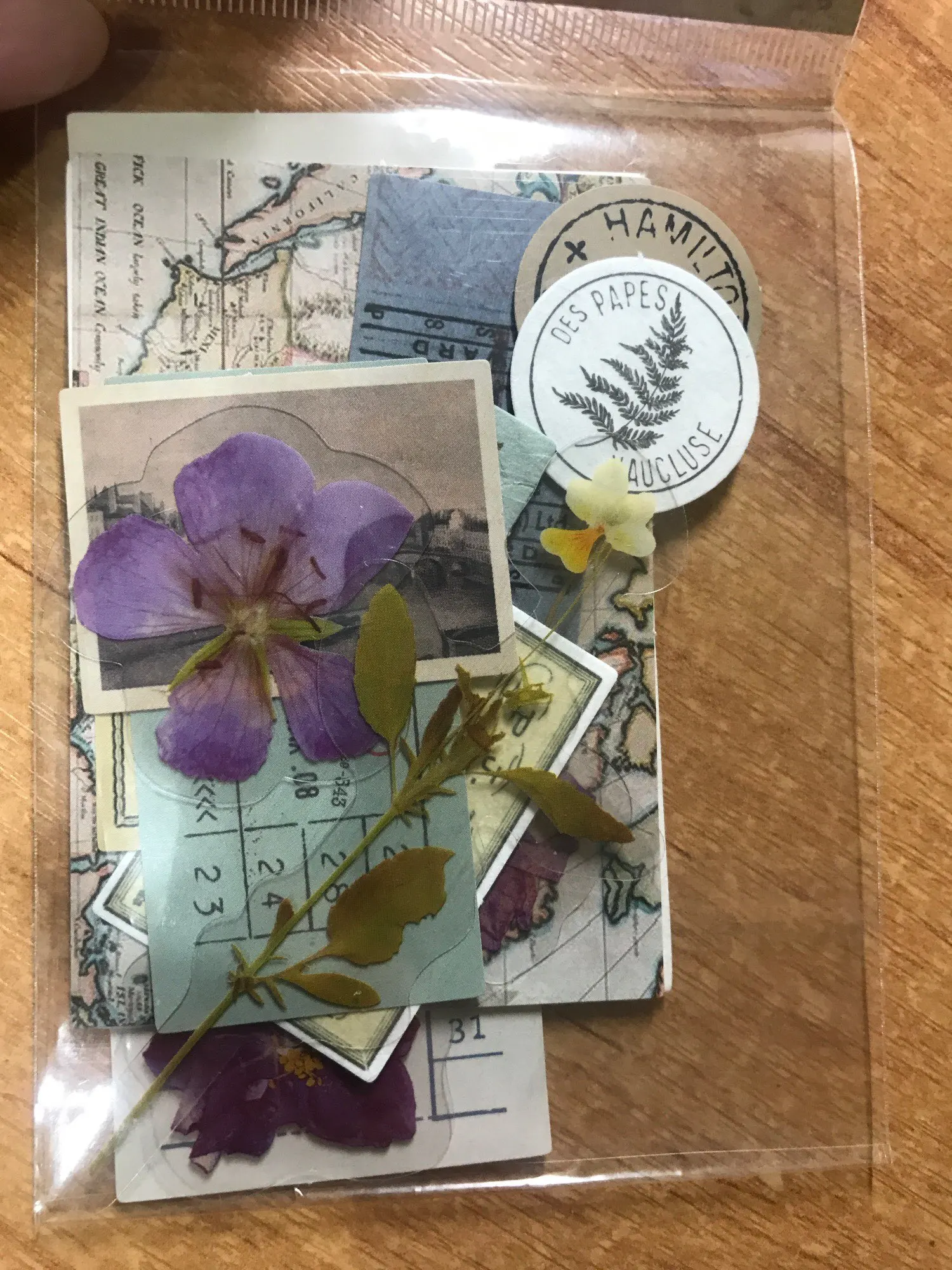 всё как на фото. в комплекте идут бумажный декор (различные статьи из газет и т.д) и сделанные из мягкого прозрачного пластика цветы. приобретением очень довольна, крайне рекомендую