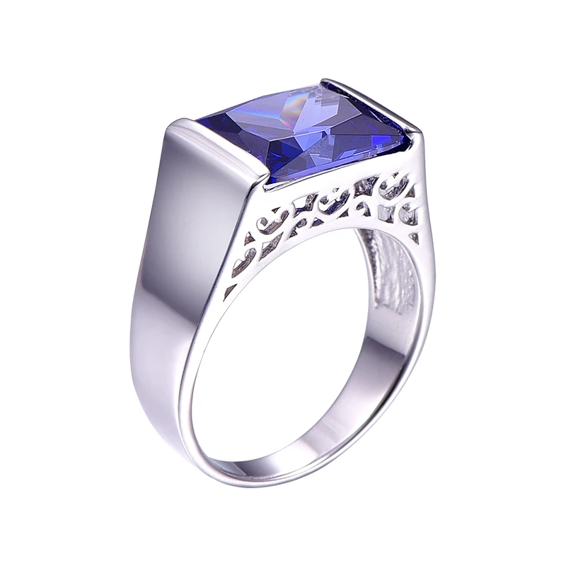 Обручальное кольцо BONLAVIE с квадратными синими танзанитами и искусственными сапфирами