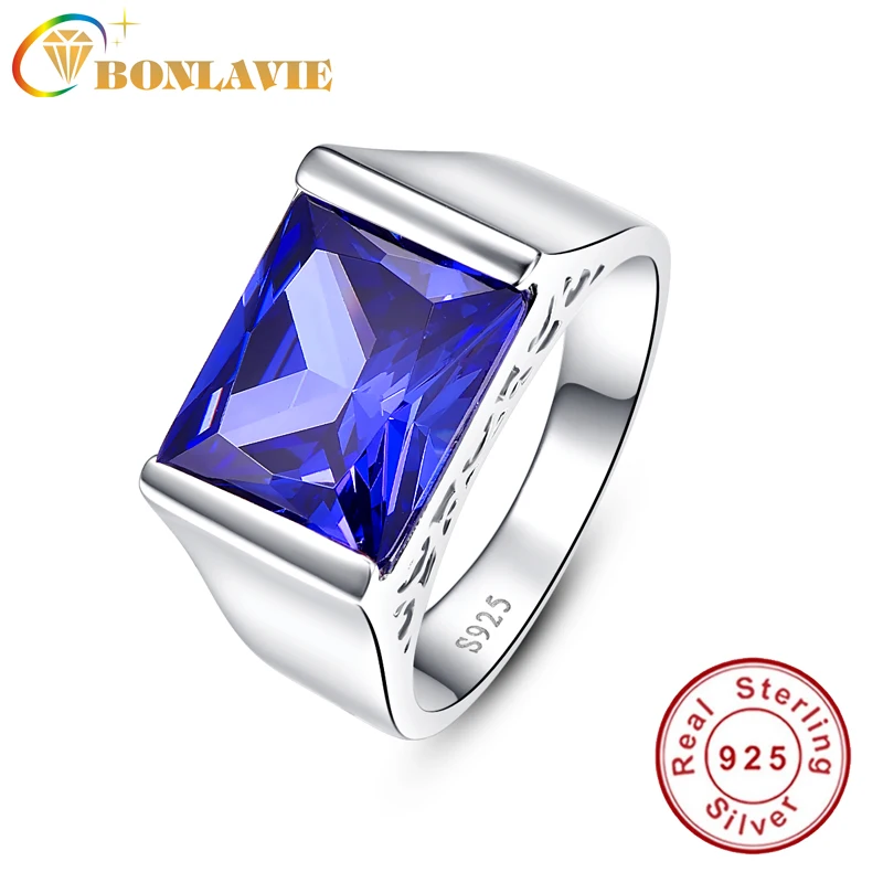 BONLAVIE классические синие сапфировое обручальное кольцо для мужчи...
