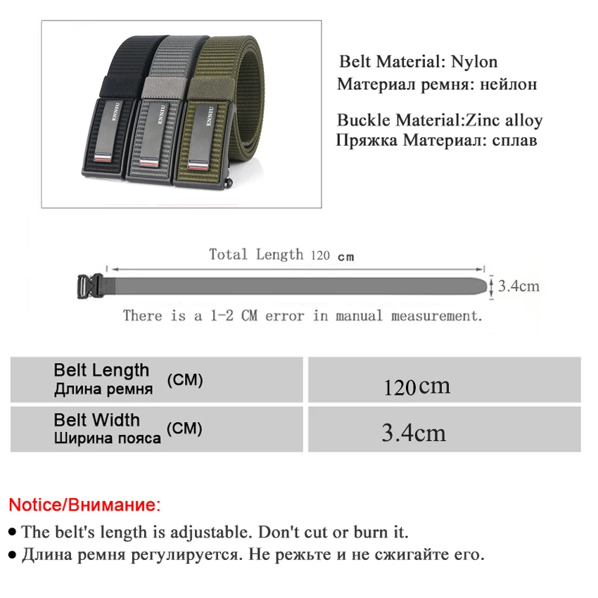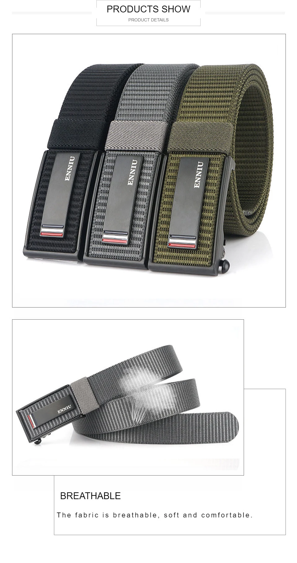 Ремень мужской нейлоновый с автоматической пряжкой, шириной 3,4 см