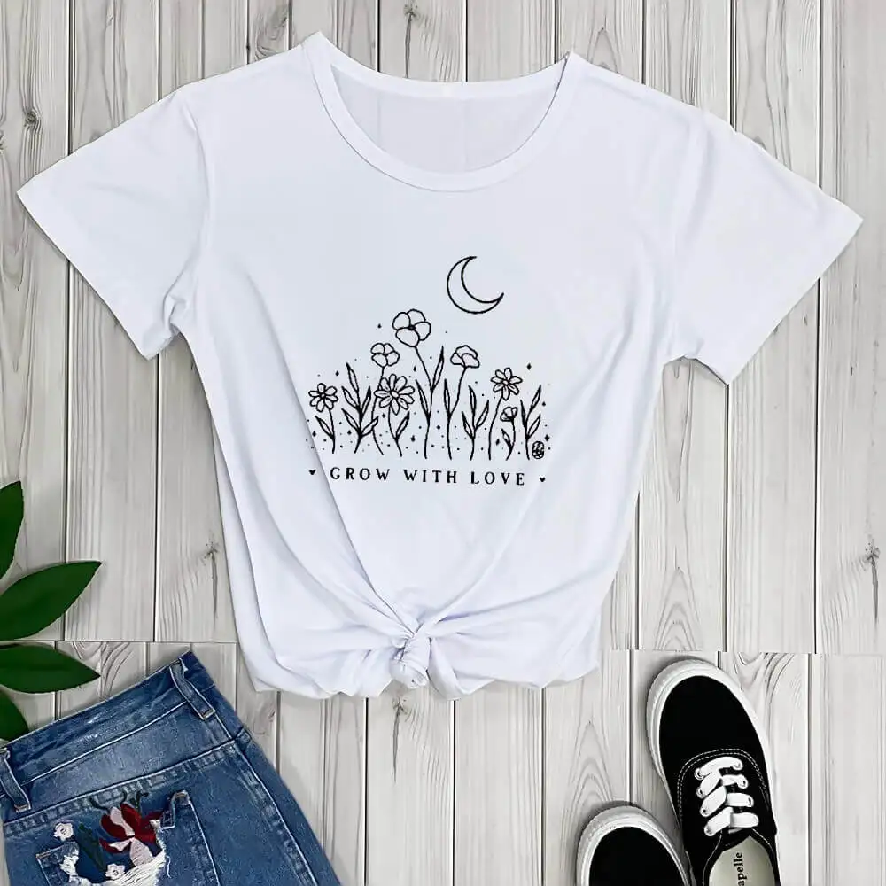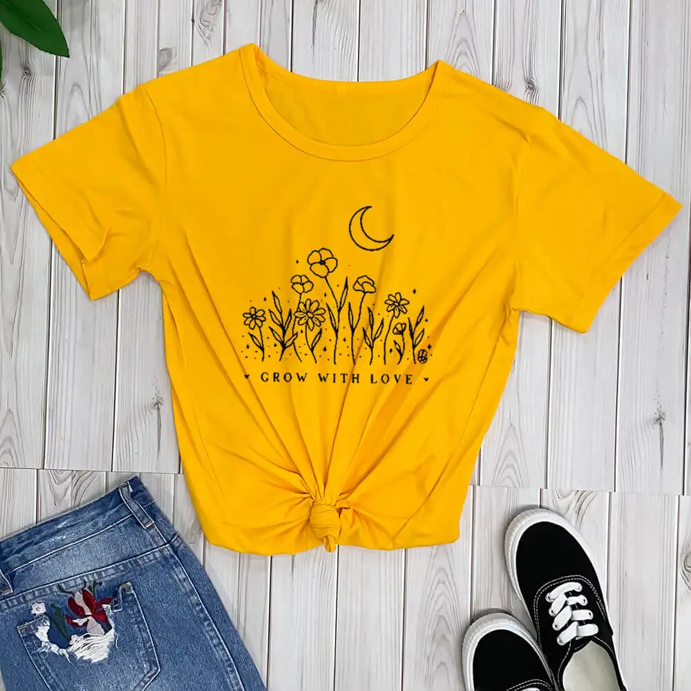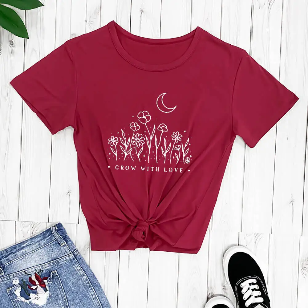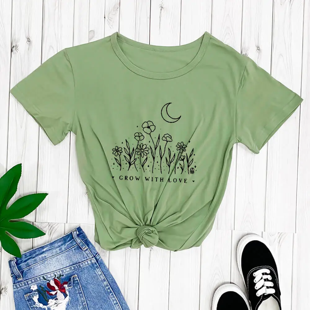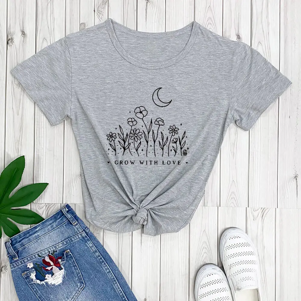 GROW WITH LOVEНовое поступление, футболка из 100% хлопка очень мягкая футболка для тех дней, когда ваше сердце может использовать немного дополнительной любви
